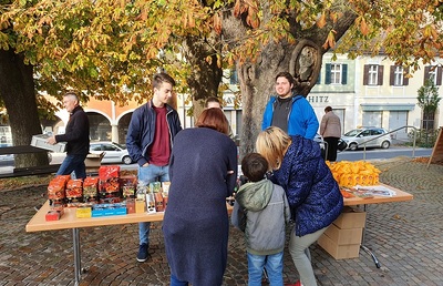 Am vorletzten Wochenende im Oktober verkauften wir nach den Messen Waren aus dem Weltladen. Der Erlös ermöglicht, dass die jungen Kirchen in den ärmsten Ländern der Welt leben und weiter wachsen können.