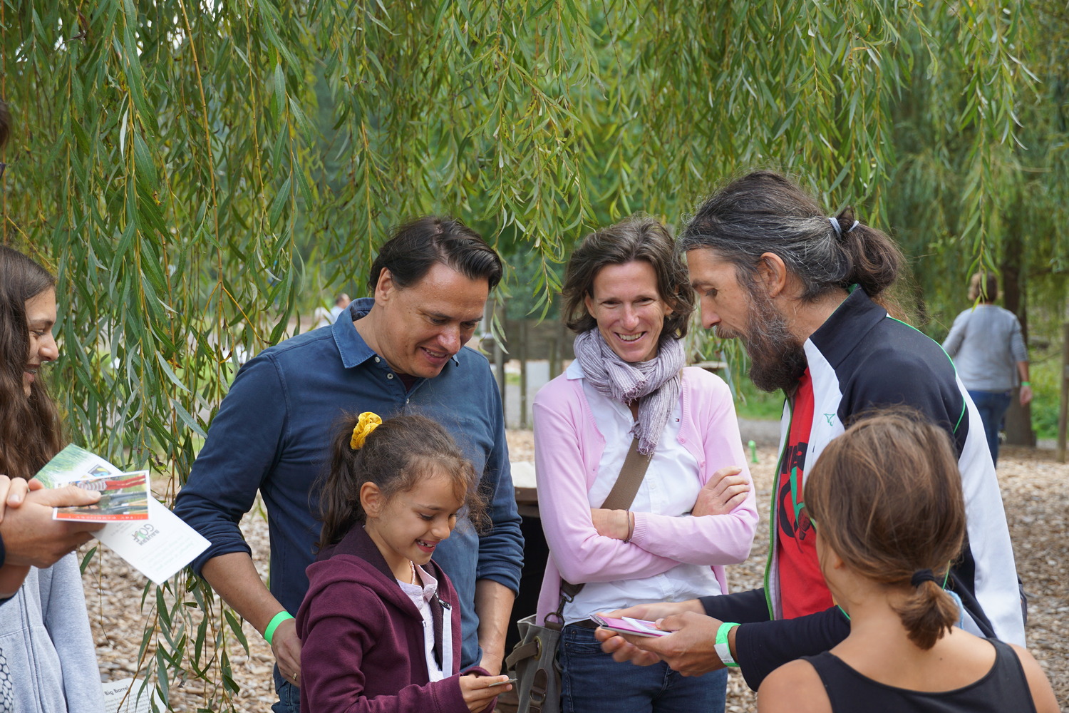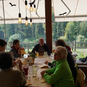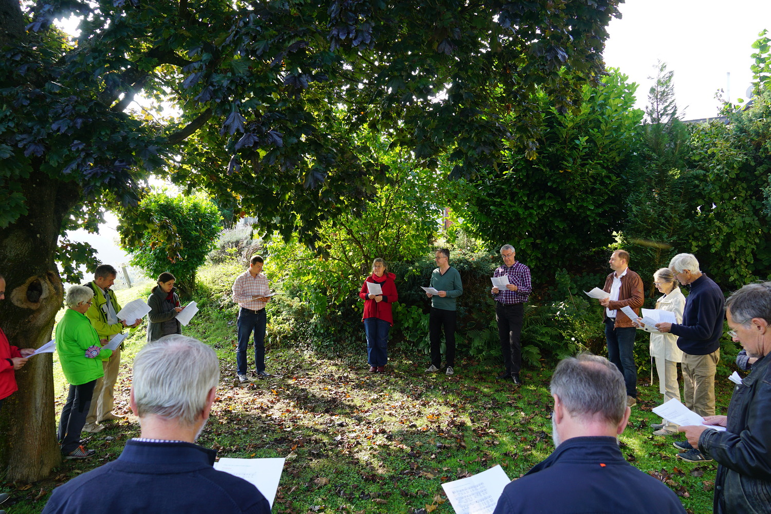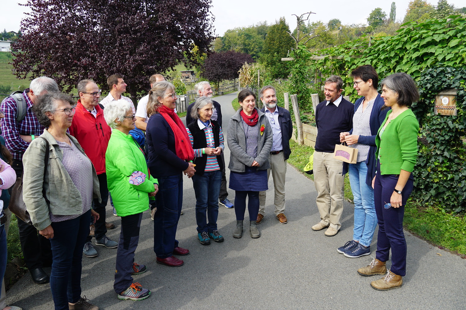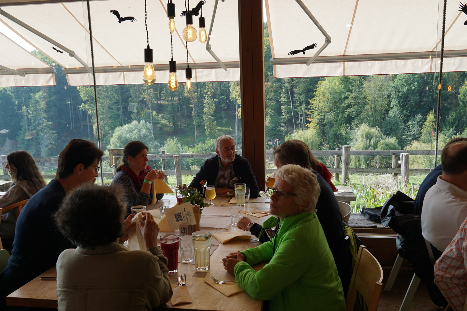 Dann ging es weiter mit einem sehr schmackhaften Bio-Essen in der „Öko-Essbar“ bei Zotter. Als ideale Verdauungsmöglichkeit – und als großes Vergnügen – erwies sich im Anschluss das „Bauerngolfen“. Mit dem gleichen Elan, mit dem der AK Nachhaltigkeit sich um schöpfungsfreundliche Projekte bemüht, wurden auch die Gummistiefel geworfen;-) Vom ältesten Mitglied, Alois Wolkinger, über den ehemaligen KA-Generalsekretär Stefan Kaltenegger bis zur kleinen Elsa waren alle mit Freude dabei.