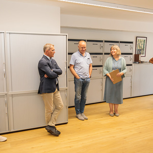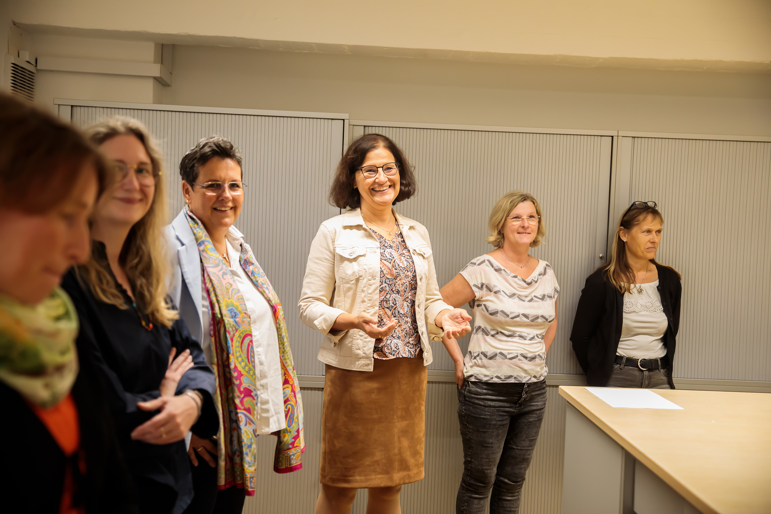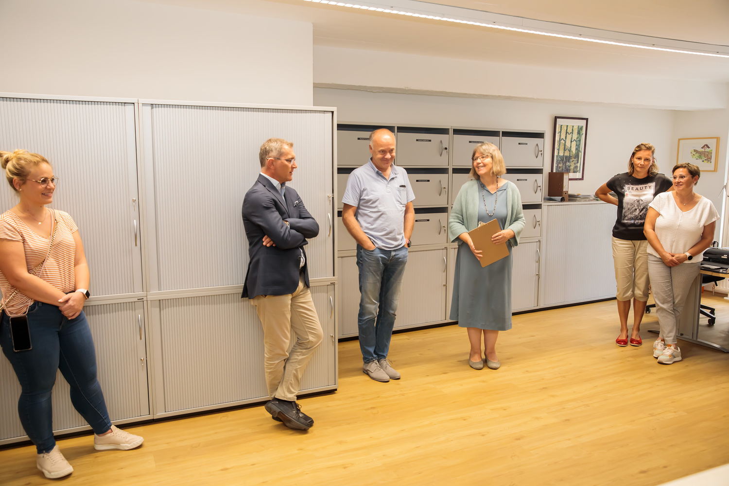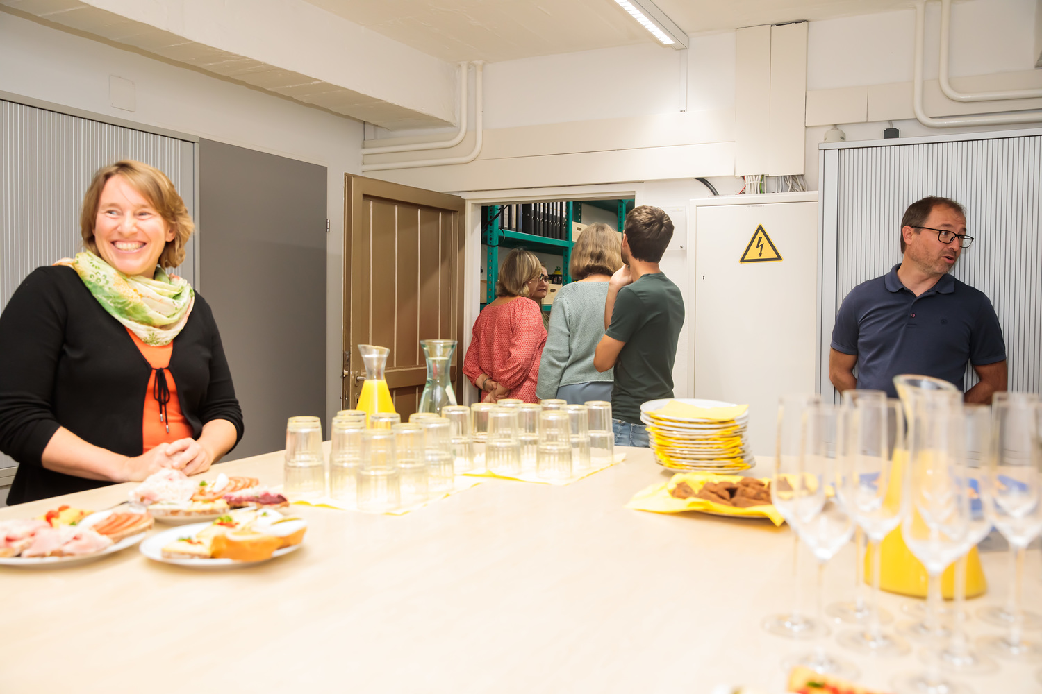 Umweltbeauftragte Hemma Opis-Pieber dankte dem „Team Pro Schöpfung“, das lange an der Umsetzung getüftelt hatte. Eine kleine Gruppe von vier Kolleginnen wird sich in Zukunft um den reibungslosen Ablauf kümmern. Wirtschaftsdirektor Andreas Ehart bezeichnete die Materialstelle als „kleinen Puzzlestein zur Rettung der Welt“ und unterstützt das Anliegen mit der großzügigen Übernahme der Kosten. Gemeinsam wurde dann ein „grünes Band“ durchgeschnitten und die Materialstelle ihrer Bestimmung übergeben. Schon im sommerlichen Probelauf war das Interesse und die Freude der Kolleg:innen groß.