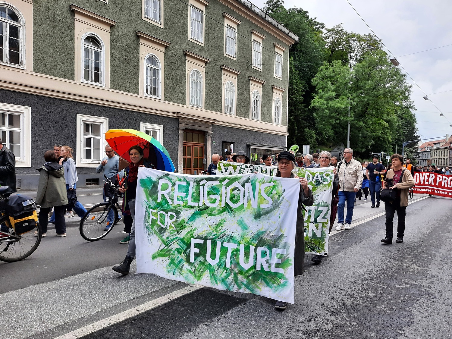 Am 31. Mai 2024 gingen Fridays for Future - unterstützt von zahlreichen weiteren For Future-Bewegungen - in Graz auf die Straße, um vor der EU-Wahl auf die Bedeutung von klimagerechter Politik und Demokratie hinzuweisen. Auch Religions for Future waren mit dabei, um die Stimme für eine enkeltaugliche Politik zu erheben.