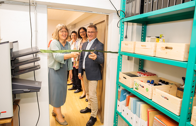 Am Tag der Schöpfung wurde im bischöflichen Ordinariat eine „Nachhaltige Materialstelle“ für die Mitarbeitenden eröffnet. Sie soll LKW-Lieferfahrten reduzieren, Zeit ersparen und den Gebrauch von umweltfreundlichen Büroartikeln zur Selbstverständlichkeit werden lassen.