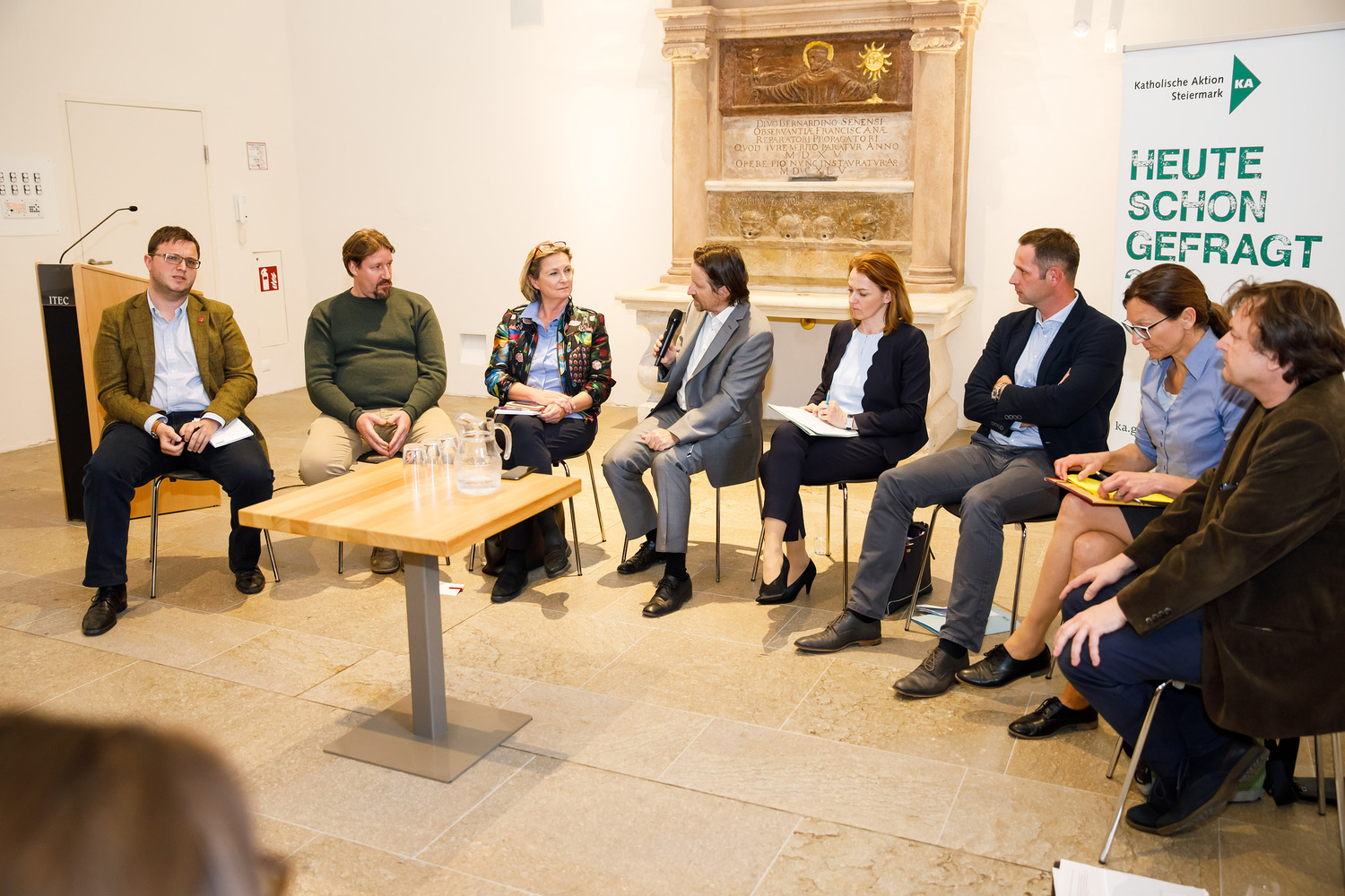 Die europäische Idee ist der Kirche ein Anliegen. Dahr luden die Katholische Aktion Steiermark und der diözesane Fonds für Arbeit und Bildung anlässlich der EU Wahl im Mai 2019 die steirischen KandidatInnen zu einer Podiumsdiskussion am 25. April ins Grazer Franziskanerkloster ein. Die Veranstaltung mit dem Titel „EU Wahl 2019 – Ökologie und Ökonomie im Fokus“ bot den WählerInnen die Möglichkeit, die KandidatInnen und ihre Standpunkte zum Umgang mit dem Klimawandel zu hören. Gleichzeitig war die Veranstaltung aber auch eine Möglichkeit, Anliegen und Sorgen der WählerInnen bei den eventuellen zukünftigen EU-Abgeordneten zu deponieren.