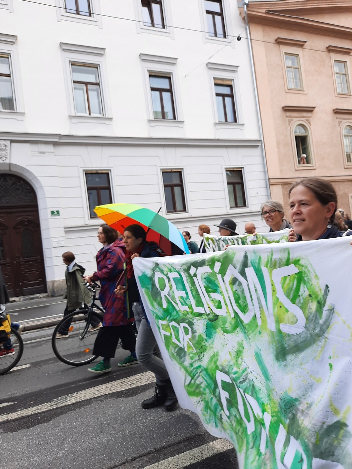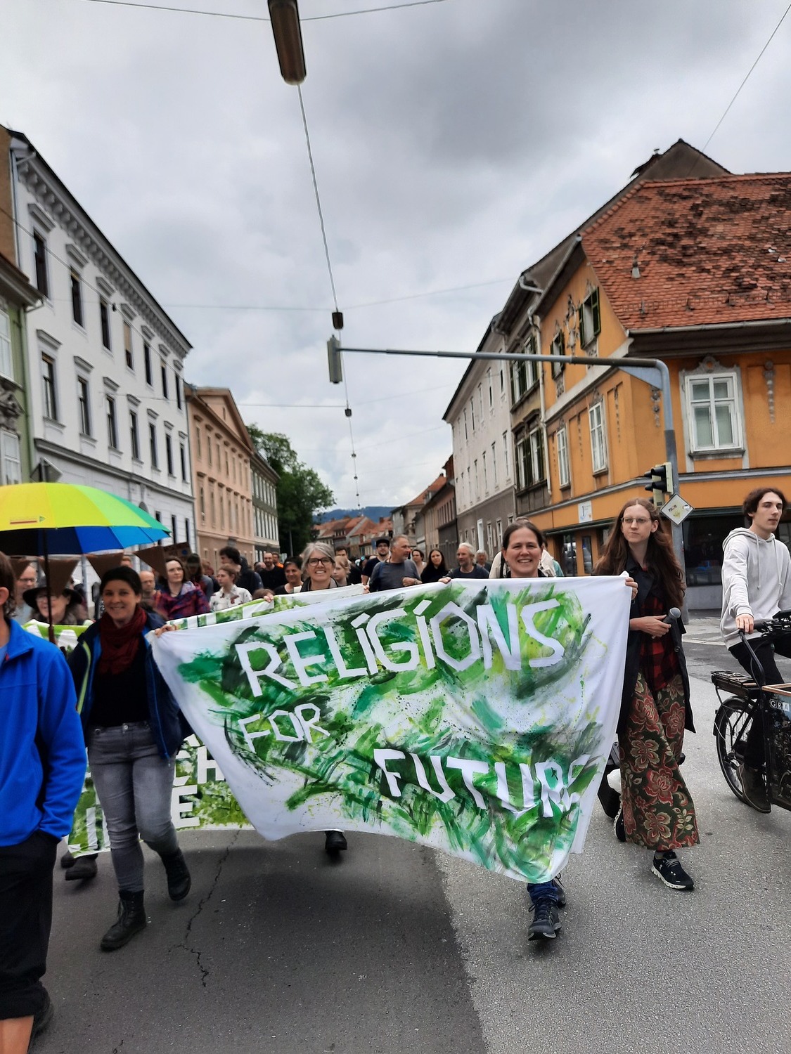 Am 31. Mai 2024 gingen Fridays for Future - unterstützt von zahlreichen weiteren For Future-Bewegungen - in Graz auf die Straße, um vor der EU-Wahl auf die Bedeutung von klimagerechter Politik und Demokratie hinzuweisen. Auch Religions for Future waren mit dabei, um die Stimme für eine enkeltaugliche Politik zu erheben.