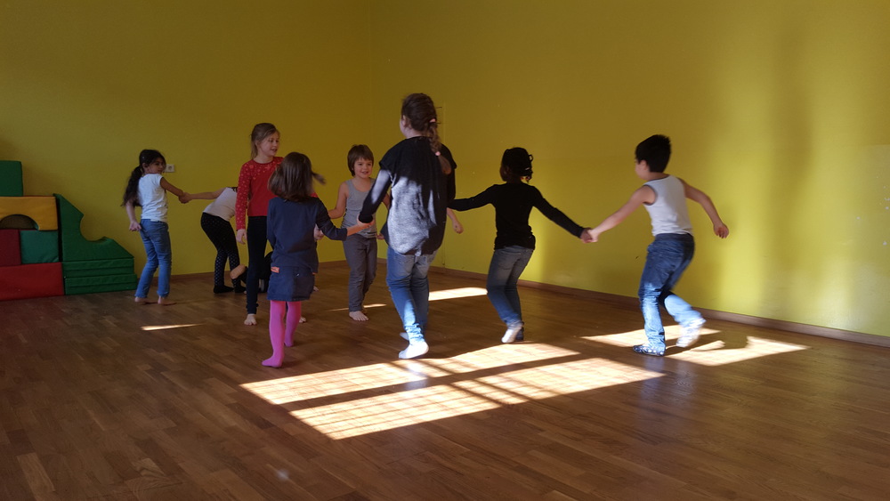 Je nach den Bedürfnissen der Kinder wird täglich ein Angebot im Turnsaal gesetzt. Neben Wettkampf- und Geschicklichkeitsspielen werden auch kooperative Spiele zur Stärkung des Gemeinschaftsgefühls angeboten.