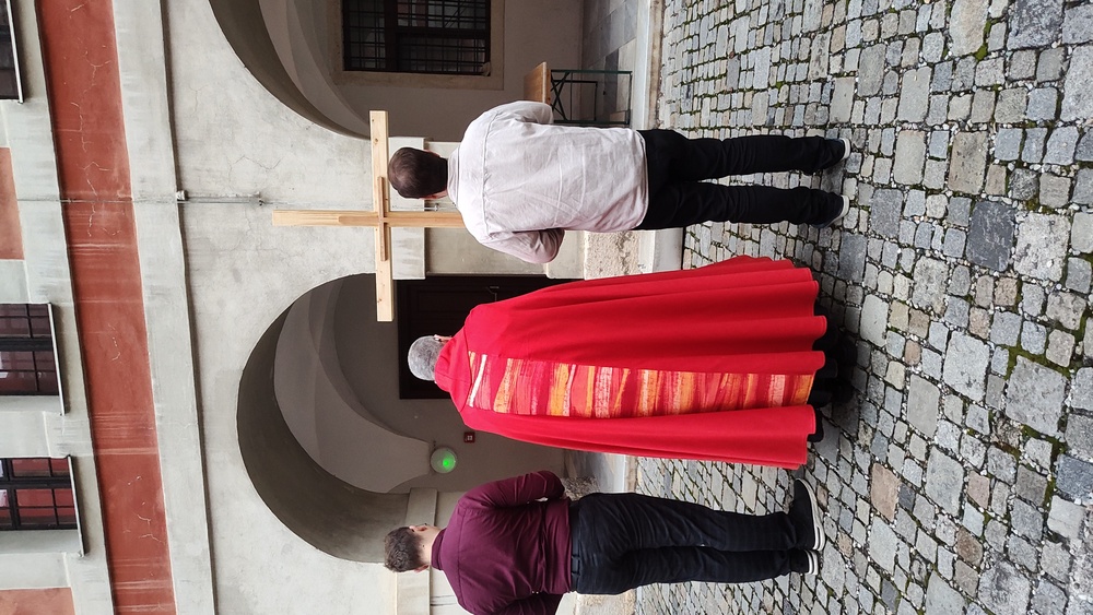 Am Mittwoch, dem 19. November, wurde das neue Kreuz in unserem Hof von Herrn Subregens Alois Kowald feierlich gesegnet. Der Red Wednesday bot den passenden Anlass, unsere lang gehegten Pläne zu verwirklichen und dieses Kreuz als sichtbares Zeichen unserer Hoffnung aufzurichten.