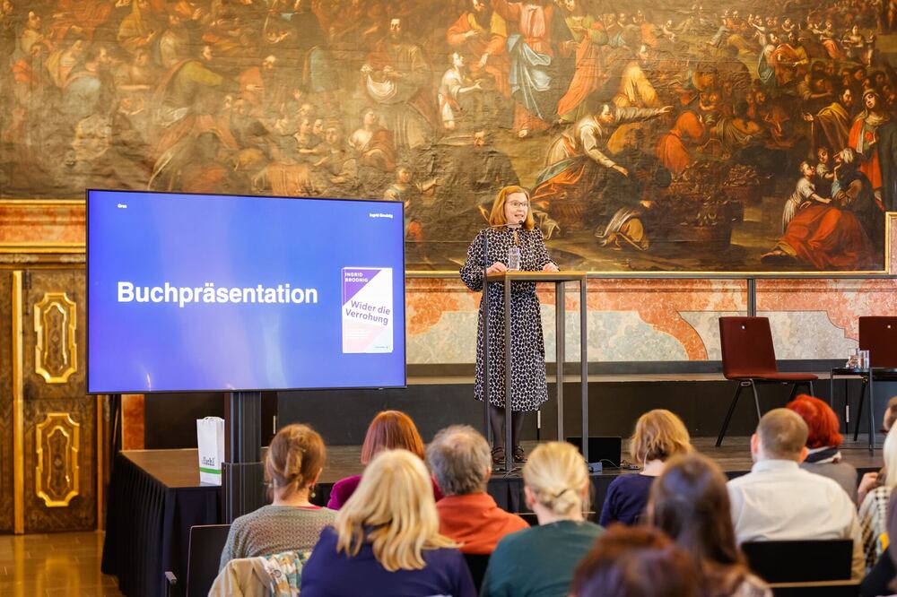 Am 14. Mai öffnete das Bildungsforum bei den Minoriten, mit dem Bischöflichen Amt für Schule und Bildung und dem KULTUM, erstmals am neuen, gemeinsamen Standort, dem Minoritenzentrum Graz, seine Tore. INGRID BRODNIGS Präsentation ihres jüngsten Buches „Wider die Verrohung“ und der anschließende Talk mit knapp 200 Gästen bildete den Höhepunkt dieses Tages.