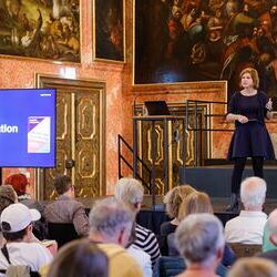 Dynamisch-humorvoll setzte die Top-Journalistin und Bestsellerautorin INGRID BRODNIG genau hier an und erläuterte, wie die Verrohung bewusst herbeigeführt wird: durch „Bullshit“-Debatten, populistische Diskussionsmuster, Diffamierung und Hetze gegen öffentliche Personen und rechtsextreme Kampagnen, angetrieben von Mechanismen sozialer Medien. „Gefährliche, kuriose und aufgeblasene Falschmeldungen zielen darauf ab, Gespräche und Konsens verhindern.“