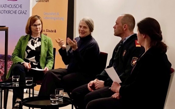 Auf diesem Appell beruhte das Ziel der Veranstaltung, die neben dem Vortrag von Helga Kromp-Kolb eine Gesprächsrunde mit Andreas Schmuck, Oberkommissär der Berufsfeuerwehr Graz, umfasste: „Wir bringen heute Abend Wissenschaft, Einsatzpraxis und nicht zuletzt unser aller Lebenserfahrung zusammen, um von unterschiedlichem Engagement zu berichten und daraus Motivation für unser weiteres Tun zu finden“, so Felber.
