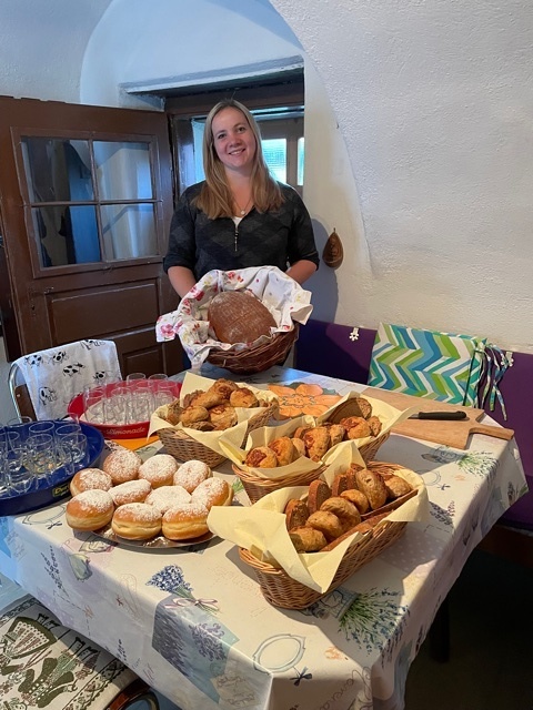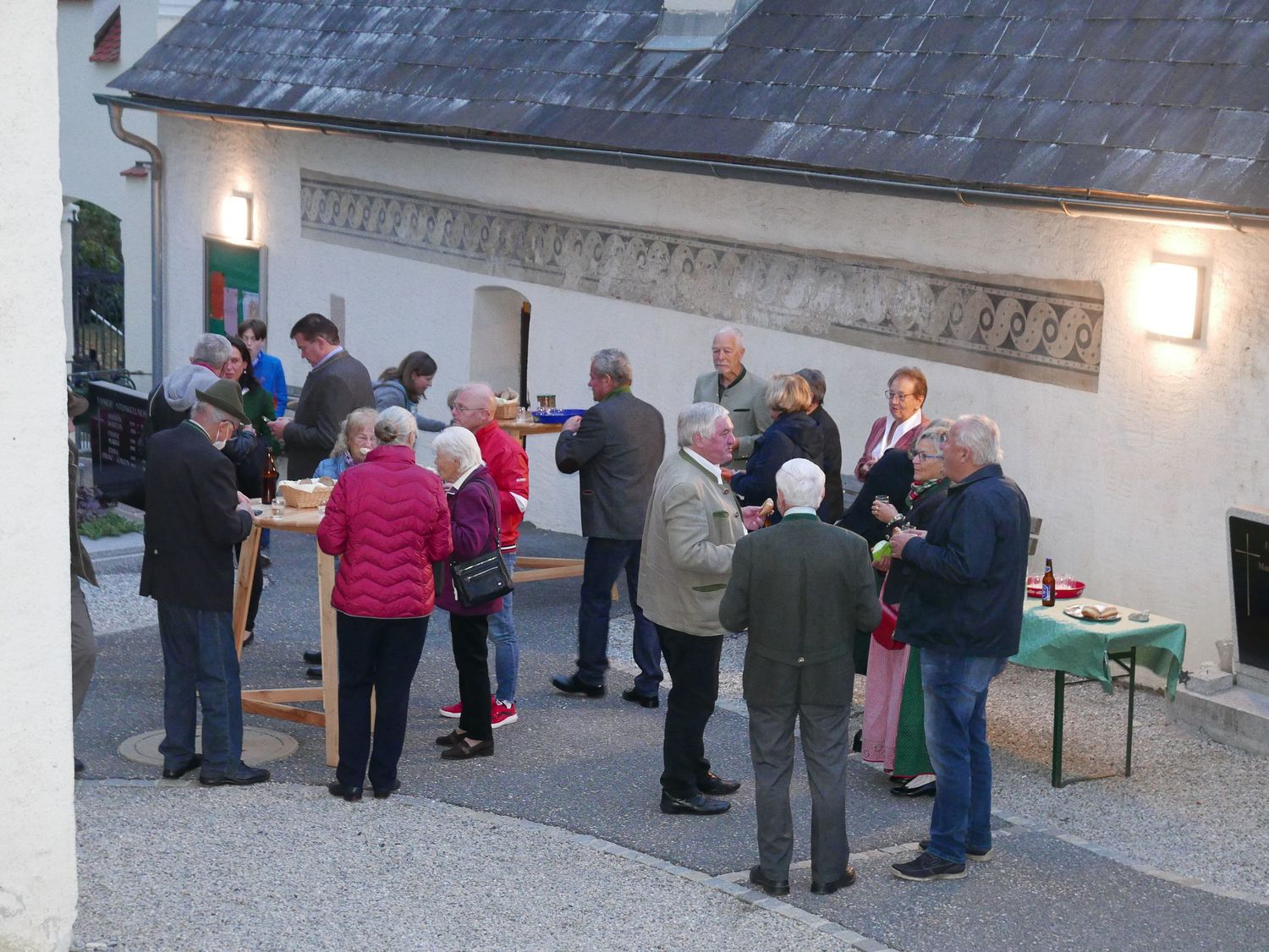 Nach dem Gottesdienst wurde eine Agape gereicht: Getränke und Brot. Ganz besonderer Dank gilt Frau Julia Stoni, die selbst gebackenes Hausbrot spendete. Die Menschen genossen mit viel Freude die Speisen und Getränke und taten sich zu vielen Gesprächen zusammen, mit Herrn Pfarrer Dr. Hüttl, Herrn Bürgermeister mit Ehepartnerin, der Frau Direktorin der Volksschule Peggau und zahlreichen, anderen Kirchen-Besuchenden.