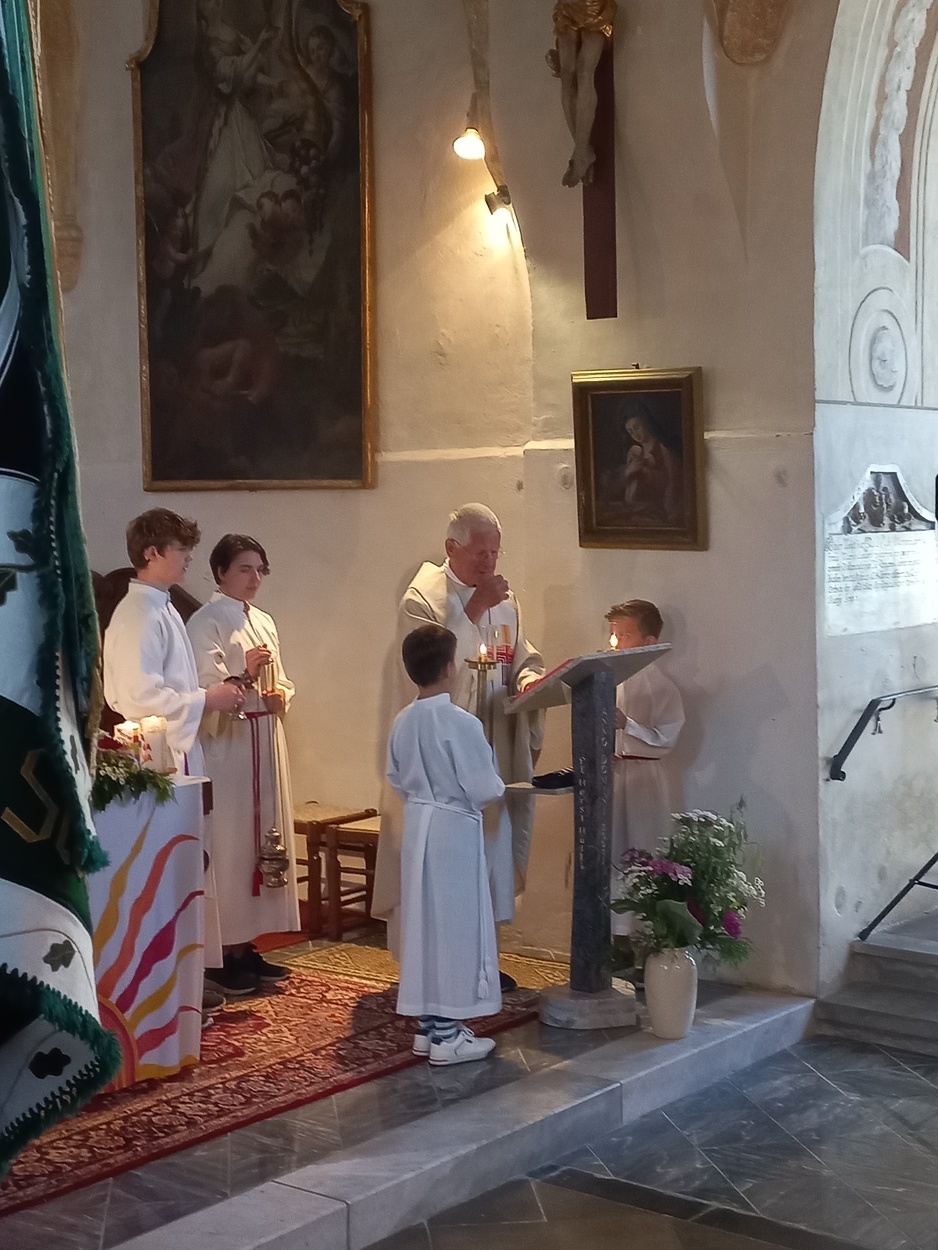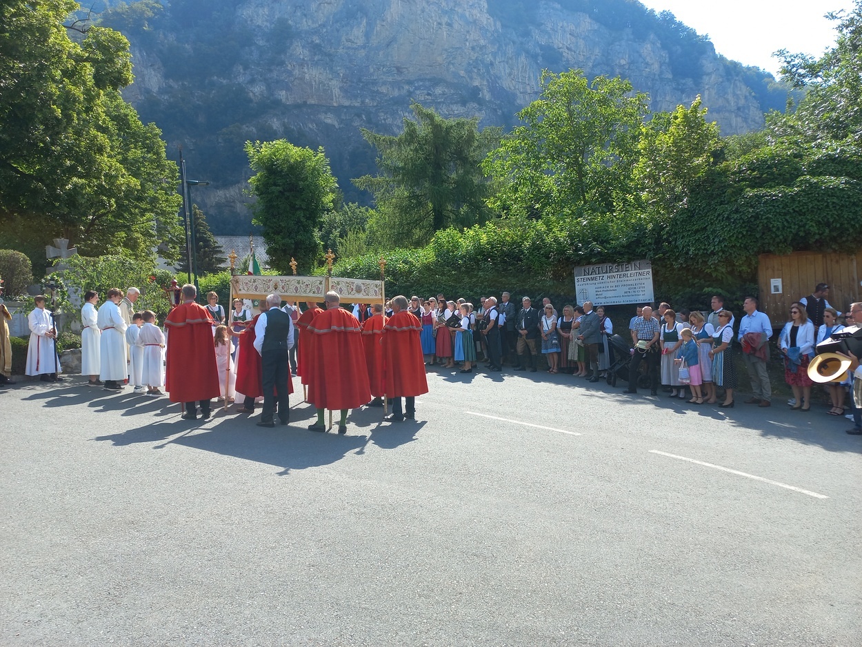 Bei prächtigem Wetter wurde Fronleichnam heuer am Donnerstag, dem 16. Juni in der Marktgemeinde Peggau gefeiert. Die festlich gestaltete Heilige Messe wurde von Prof. Helmut Schlacher in der Margarethenkirche zelebriert und musikalisch vom Gesangsverein Peggau-Deutschfeistritz und der Musikkapelle Peggau-Deutschfeistritz sehr stimmungsvoll begleitet. Anschließend führte die Fronleichnamsprozession durch den Ort bis zum Franz-Tieber-Platz. Die Oberlandler Deutschfeistritz-Peggau, die Kameradschaft vom Edelweiß und der Obst- und Gartenbauverein Deutschfeistritz-Peggau nahmen an den Feierlichkeiten ebenfalls teil. Herr Bürgermeister Hannes Tieber bedankte sich bei den Vereinen mit Peggau-Gutscheinen.