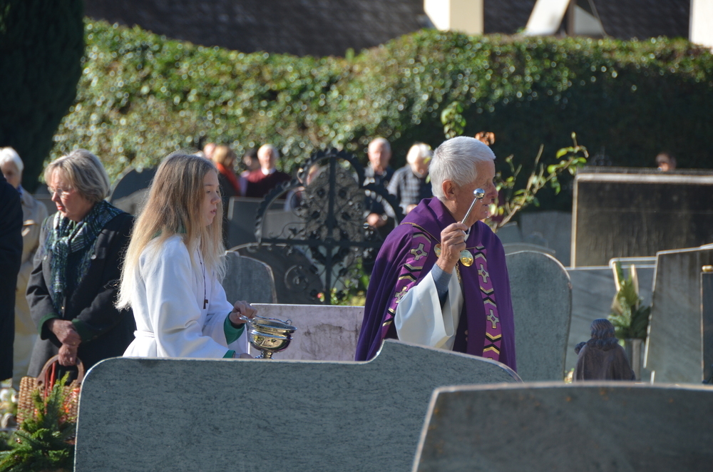 Im Anschluss an die hl. Messe wurden alle Gräber am Kirchen-und Ortsfriedhof gesegt, wozu viele Angehörige bei strahlend warmen Herbstwetter am Grab ihrer Lieben sich versammelt haben.