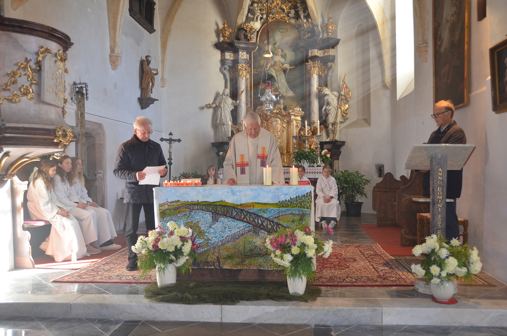 Wir haben am Allerheiligentag einen Festgottesdienst in Peggau mit Prof. Schlacher in der schön geschmückten Kirche als Pfarrverband gefeiert.