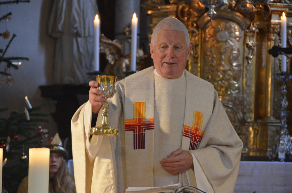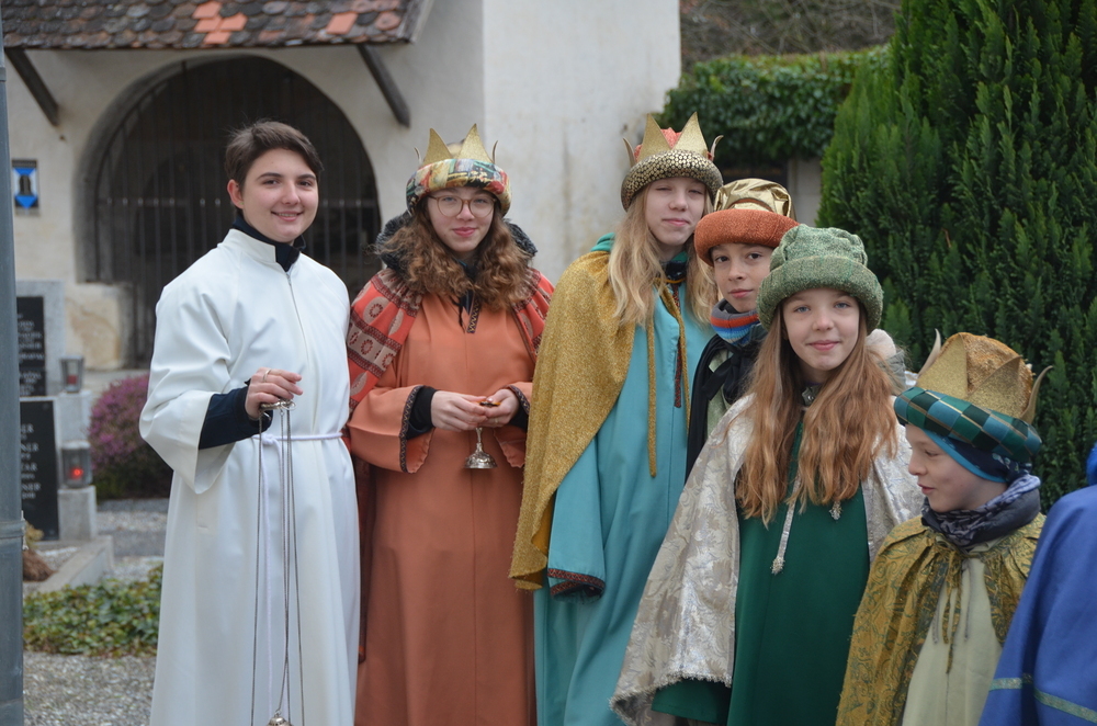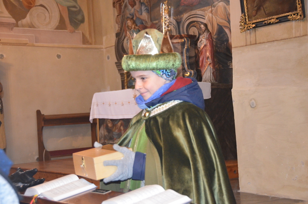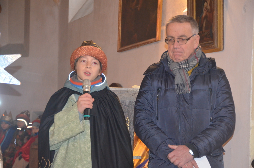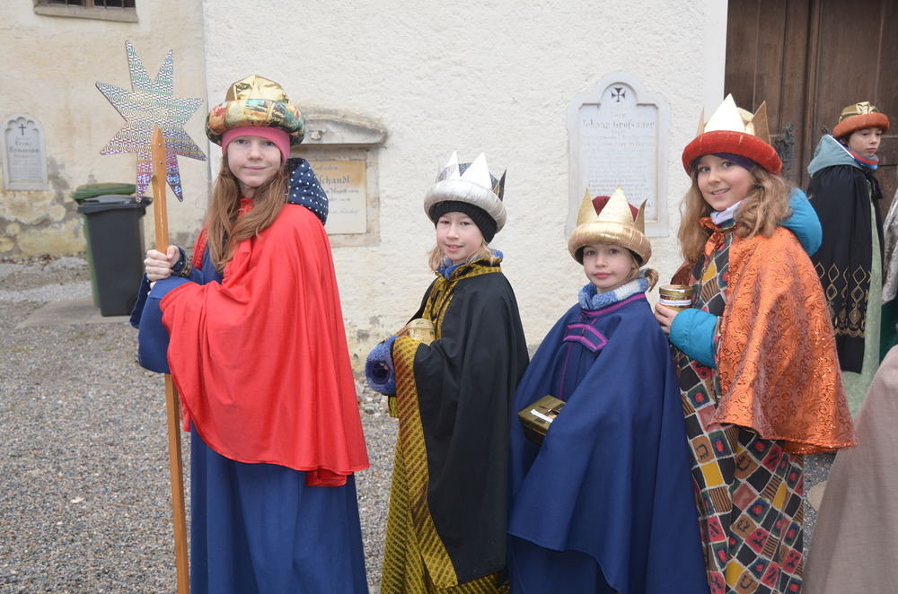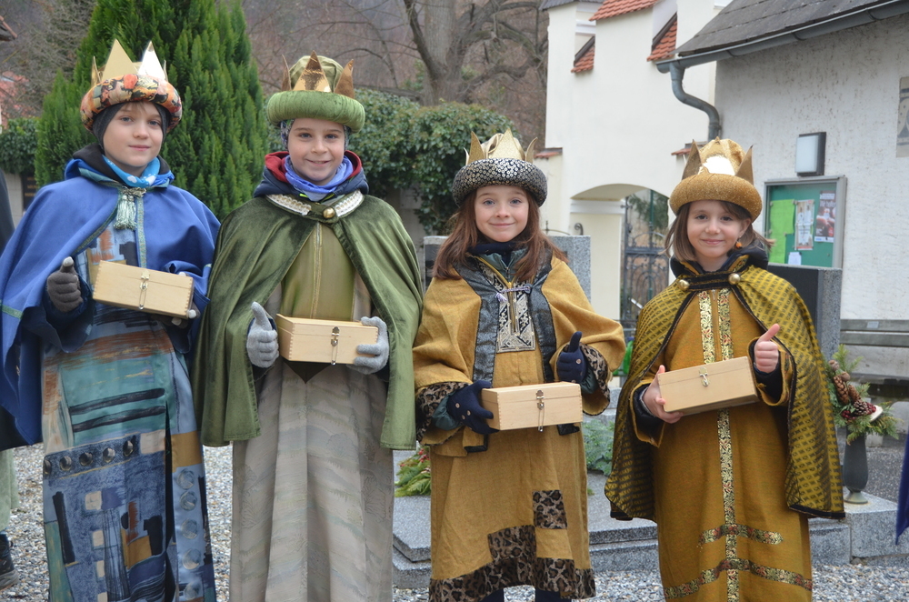 Nach dem Evangelienspiel unter der bewährten Regie von Toni Gschier erzählte Pfarrer Schlacher die Geschichte des Goldes, das die Könige dem Kind in der Krippe darbringen. Es weist auf die Göttlichkeit von Jesus hin, der uns als Kind begegnet und so den Menschen zum Segen wird. Diesen Segen tragen die Sternsinger in die Häuser und auf die Plätze unserer Orte. Sie tragen auch dazu bei, dass das gesammelte Geld zum Segen für Familien in Guatemala und vielen anderen Ländern wird, in denen es Projekte der Dreikönigaktion gibt. Ein großes Vergelt’s Gott allen, die auch heuer wieder zum Gelingen des Sternsingens beigetragen haben und den schönen Betrag von € 10.085,49 ermöglicht haben. Möge uns der Segen Gottes in ein gutes neues Jahr 2024 begleiten.