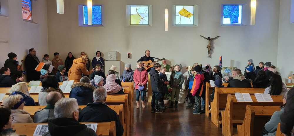 Durch die Unterstützung der Sänger.innen des Erstkommunion-Ensembles unter Katharina Wesener und Toni Gschier wurden wir schon mit den schwungvollen Liedern vertraut.