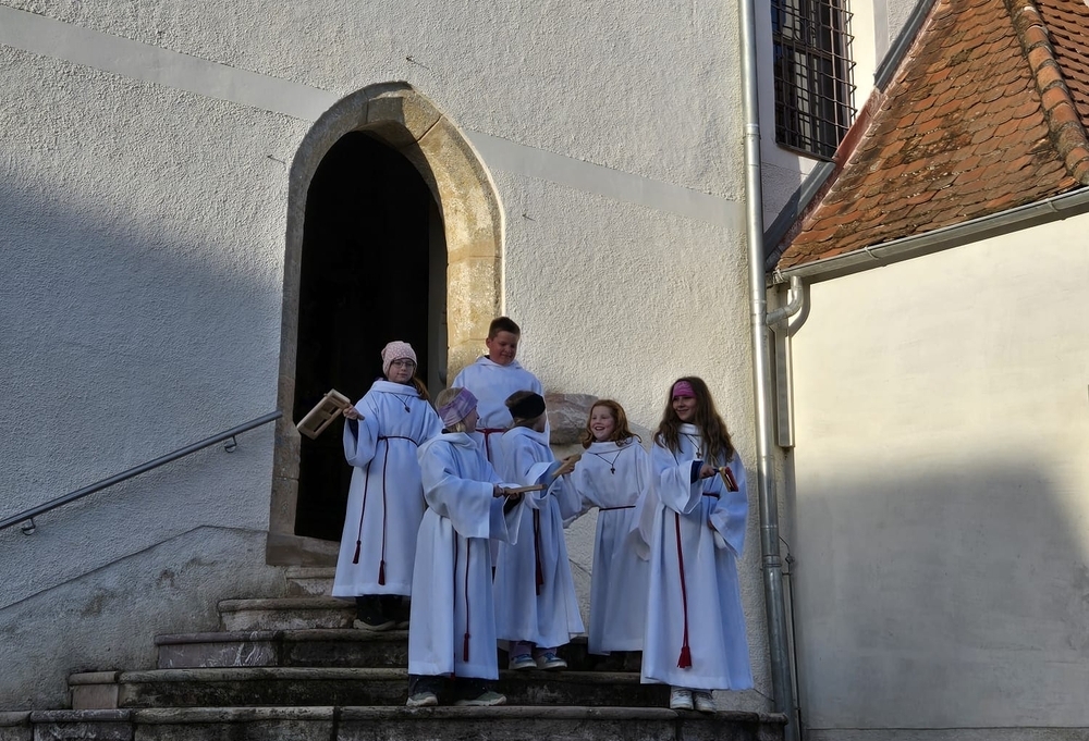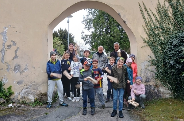 Am Anfang der Karwoche gab es für interessierte Kinder einen Ratschenbaukurs am Kirchberg. Mit den selbstgebauten Ratschen wurden die Kirchbesucher am Karfreitag vor der Kirche begrüsst.