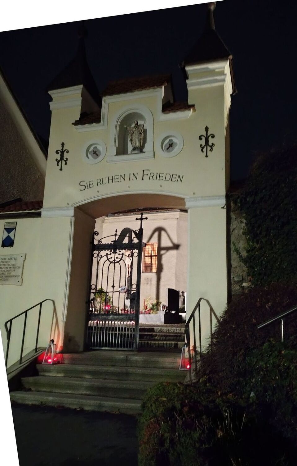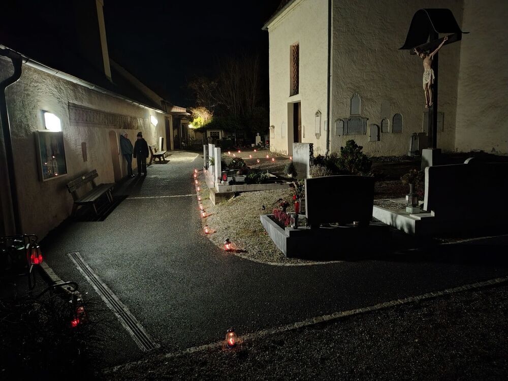 Nur Kerzenlicht, kein elektrisches erhellte die Kirche und ihre Umgebung, den Zugang, den Weg und den Innenraum. Ein gut tuender Gegensatz zu üblichen Lichtüberflutungen.