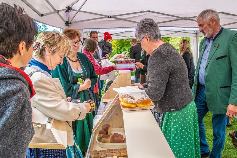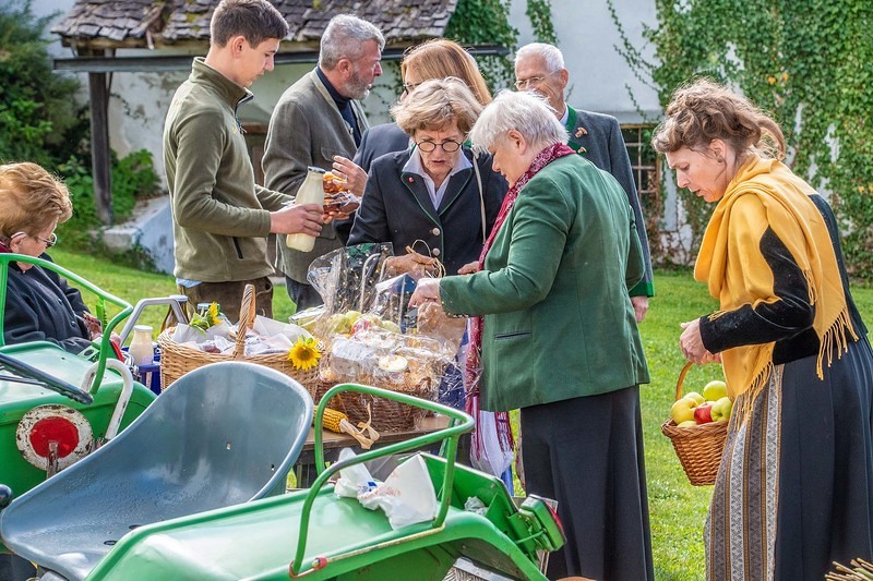 Nach dem Gottesdienst gab es im Kirchhof ein festliches Zusammensein bei Speis und Trank, das von den verschiedenen Vereinen der Pfarre und vom Pfarrgemeinderat veranstaltet wurde. Bei dieser Gelegenheit wurden die gespendeten Erntegaben an die Besucher gegen eine Spende für die Caritas und für notleidende Menschen in der Steiermark abgegeben. Der Reinerlös des Festes wird für die Arbeit der Pfarre – auch im Zusammenhang mit der Bautätigkeit beim Pfarrsaal – verwendet.