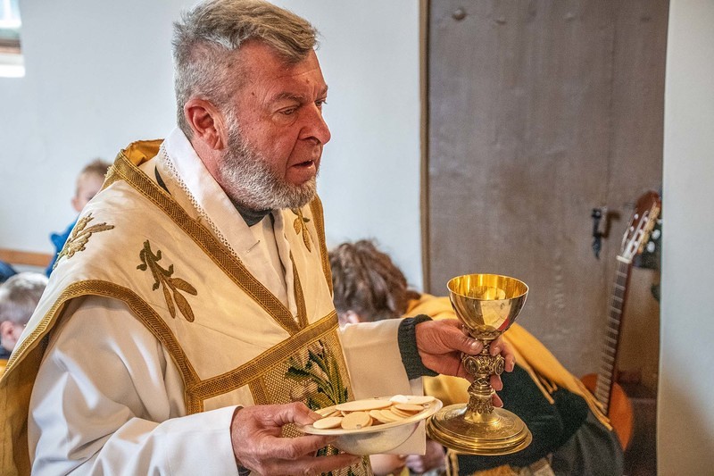 Pastoralassistent Toni Gschier stellte ein Orchester zusammen, das den Gottesdienst musikalisch umrahmte. Als Lesung gab es eine Geschichte, die über die vielen Arbeitsschritte erzählte, die notwendig sind, bis eine knusprige Frühstückssemmel auf unserem Frühstückstisch landet. Pfarrer Hüttl predigte diese Geschichte, die er selbst textlich zusammengestellt hat, in seiner Festpredigt aus.