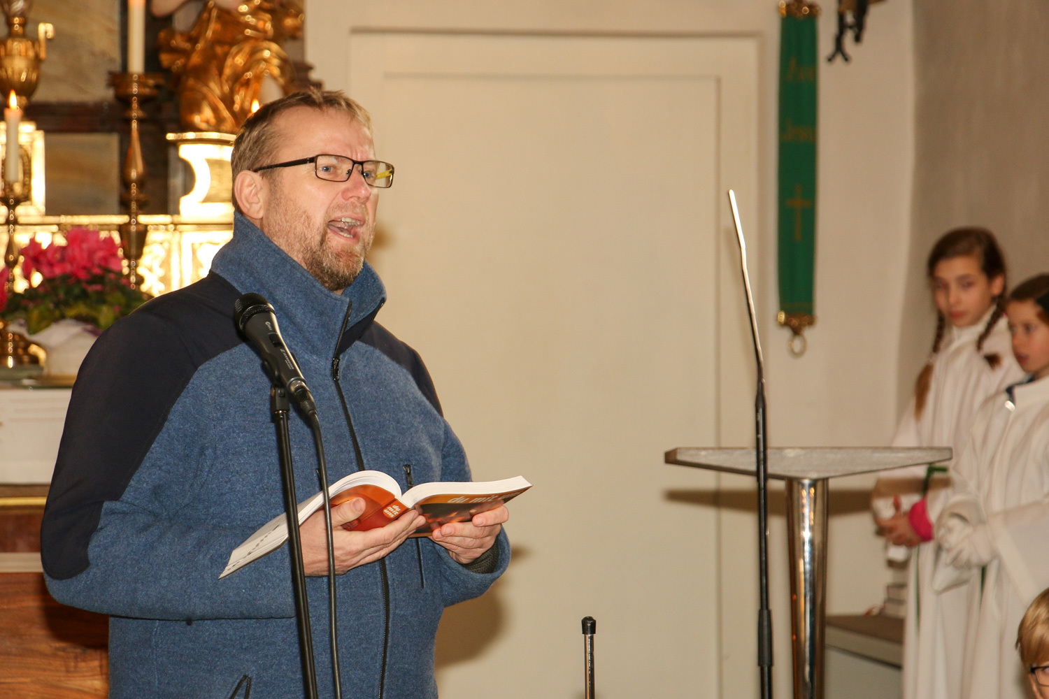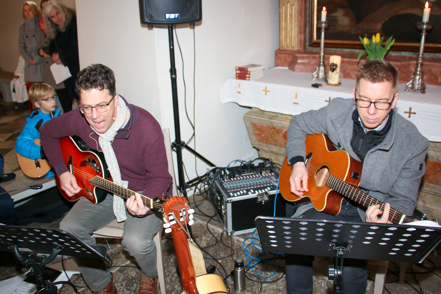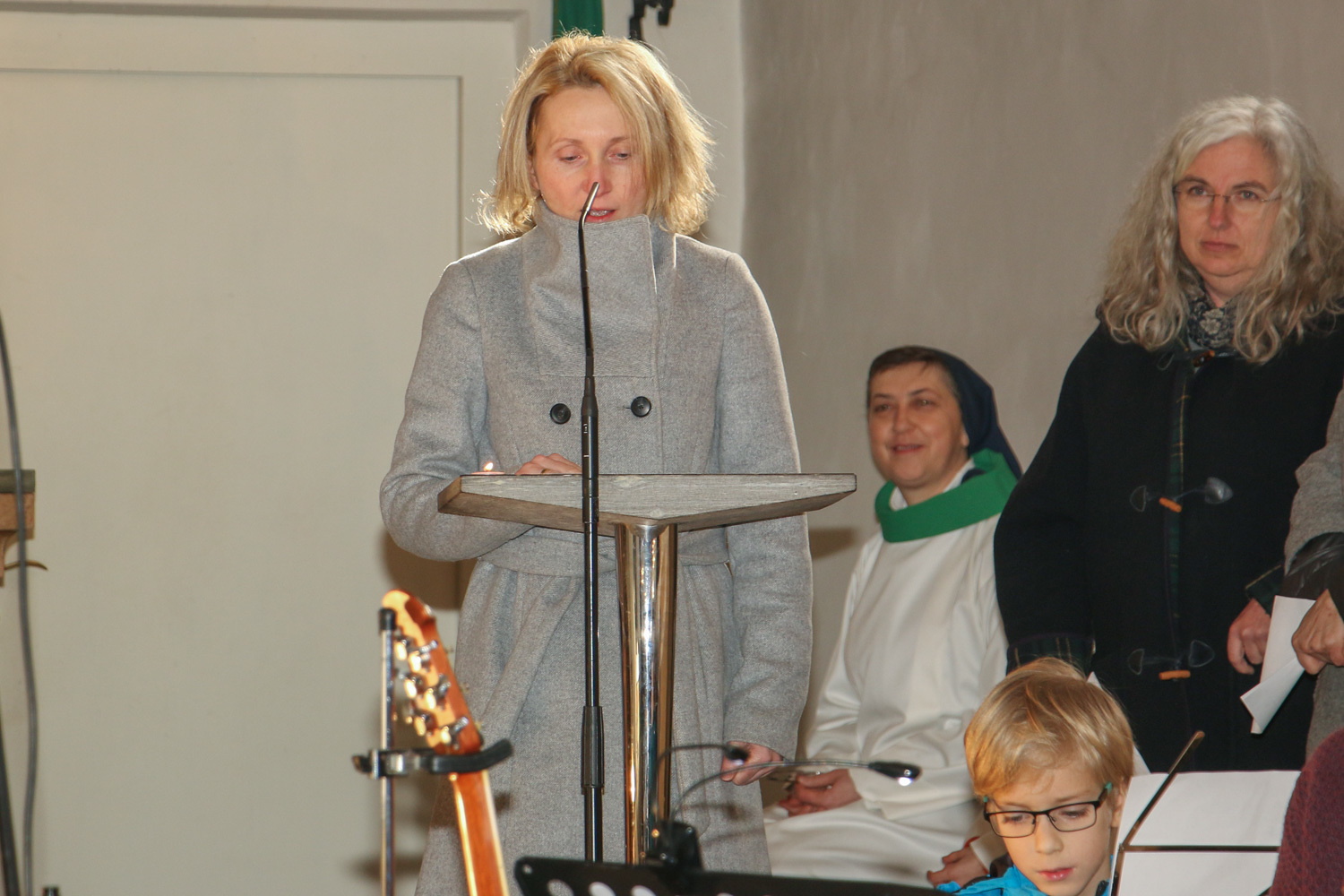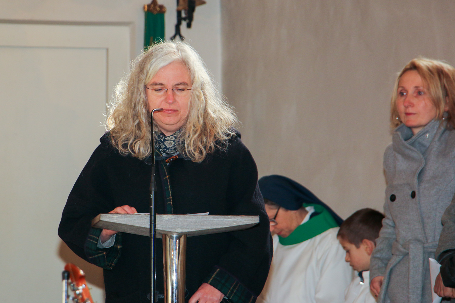 Drei Mütter sprachen bei der Predigt über die Themen aus dem Evangelium (Salz und Licht) und der Taufe. Bei der Taufe stehen drei Symbole im Mittelpunkt: Das Taufwasser, das weiße Kleid und die Taufkerze. Diese Taufkerze brachten die Kinder mit, um sie an der Osterkerze zu entzünden und so an ihre Taufe erinnert zu werden.
