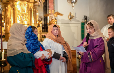 „Alle Jahre wieder…“ spielen die Kinder der 4. und 3. Klasse Volksschule das Krippenspiel als Einstimmung auf die Feier des Heiligen Abends.