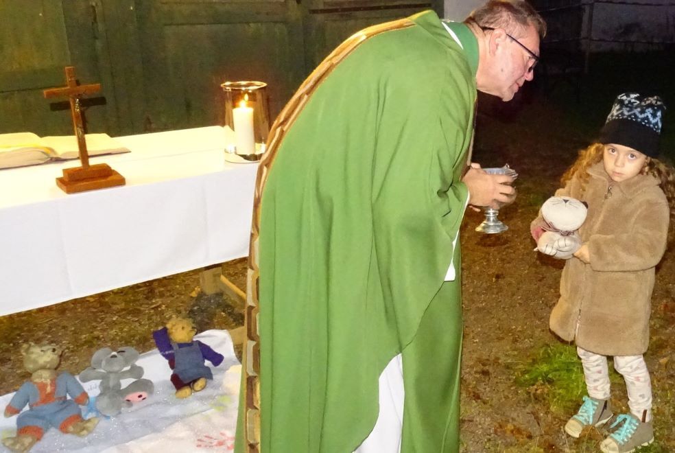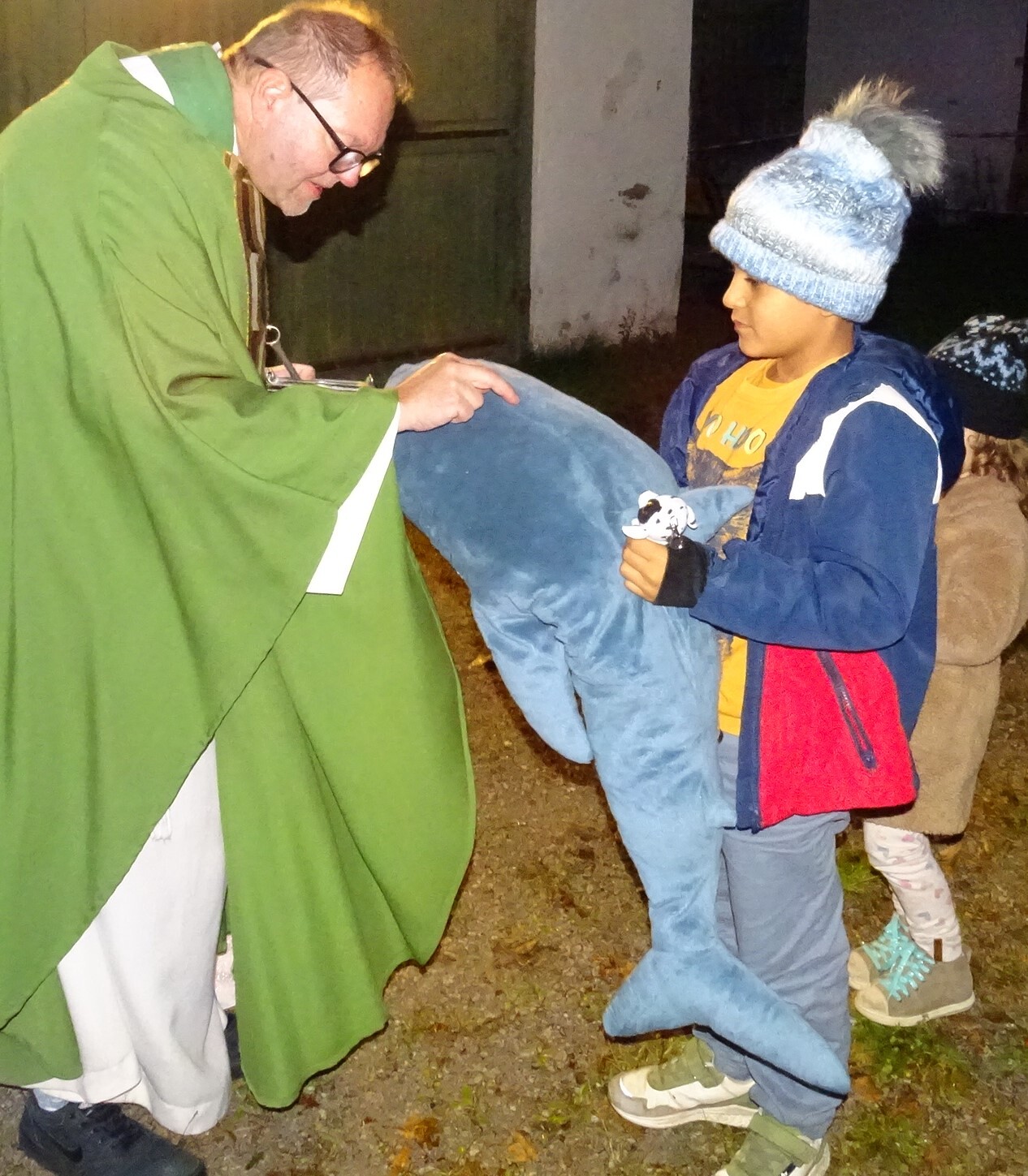 Am Samstag, 4. Oktober lud Pfarrer Ruthofer zur Tiersegnung in den Klostergarten. Zur Vorabendmesse kamen kleine und große Tierfreunde. Pfarrer Ruthofer segnete Hasen, Bären, Hunde, eine Maus und einen Riesen-Hai mit Weihwasser und vom Schöpfer des Himmels und der Erde wurden auch alle Besucher mit zarten Regentropfen beglückt!