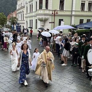 Der große Festtag begann feierlich mit einer Prozession zur Kirche, begleitet von der Musikkapelle, die mit ihren Klängen für eine würdevolle Einstimmung sorgte.