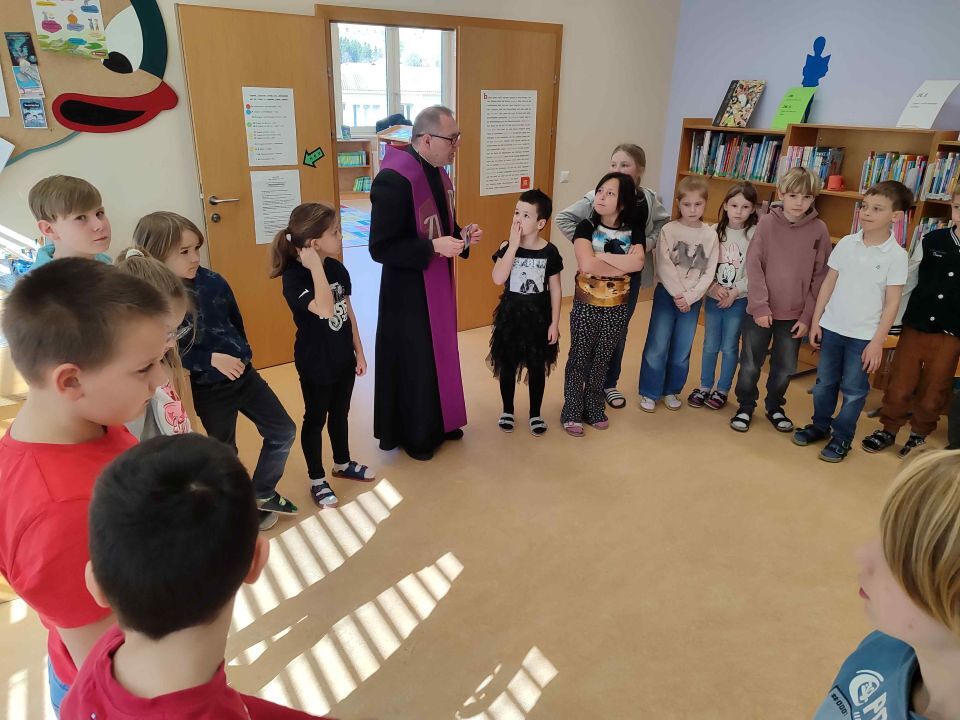 Die Vorbereitung auf diesen besonderen Tag begann bereits Monate zuvor mit einer Vielzahl an gemeinsamen Aktivitäten, die sowohl spirituelle Tiefe als auch Gemeinschaftserfahrung vermittelten. In der Schule feierten die Kinder gemeinsam mit unserem Herrn Pfarrer Ruthofer und der Religionslehrerin Frau Ferk das Sakrament der Versöhnung. Auch ein besonderes Highlight an diesem Vormittag war das Gestalten von Mosaikkreuzen. Mit viel Kreativität und Freude fertigten die Kinder kunstvolle Kreuze, die nicht nur zur Dekoration dienten, sondern auch ihre persönliche Beziehung zu Jesus zum Ausdruck brachten.