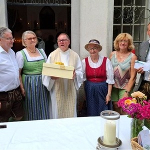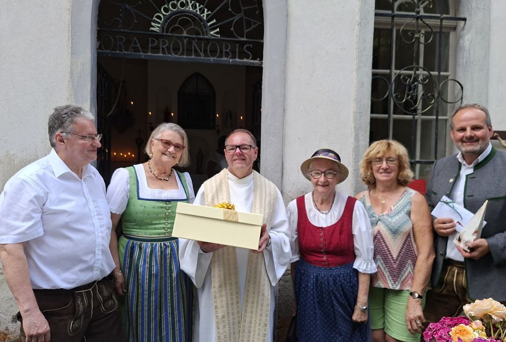 Der Pfarrgemeinderat überraschte Ihn zu seinem 30 jährigen Priesterjubiläum. Die Adriacher Sängerrunde gestaltete die Messe feierlich mit - und als Höhepunkt wurde "Die Ode an die Freude" angestimmt. Der Pfarrgemeinderat überreichte Herrn Pfarrer Ruthofer zu diesem Anlass eine Albe und einen Ledereinband für das Brevier. Pfarrer Ruthofer zeigte sich tief bewegt und sichtlich überrascht.
