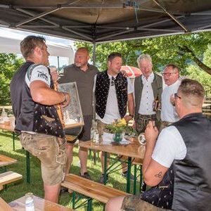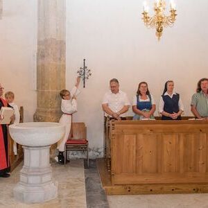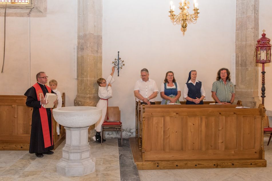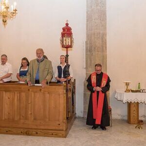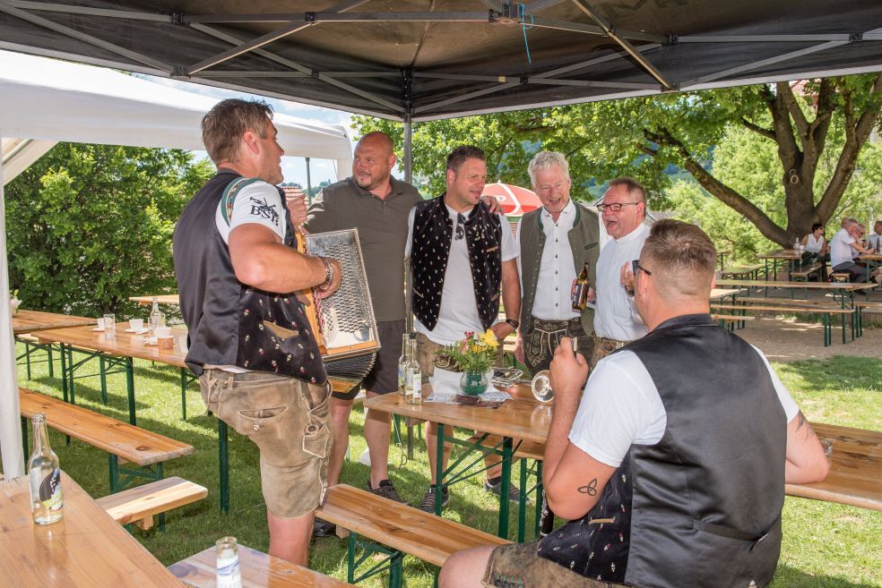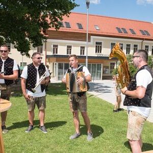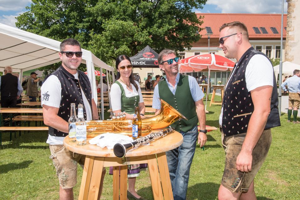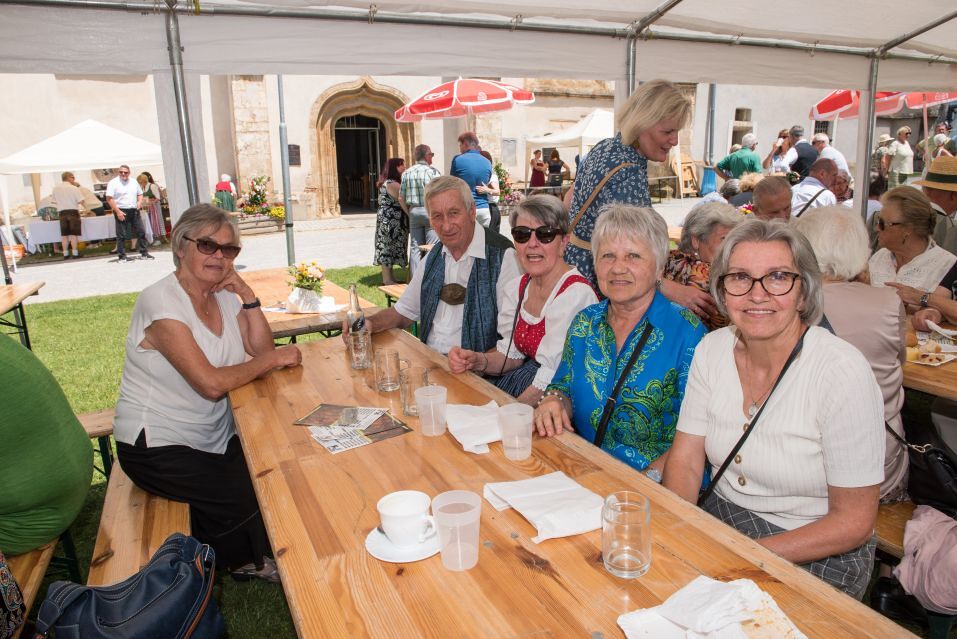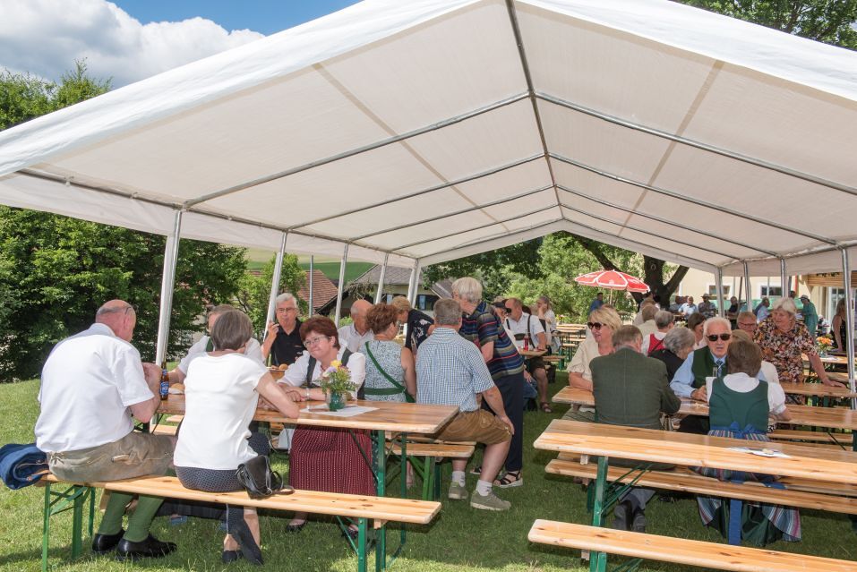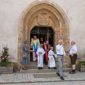 Gesellig ging es vor der Kirche weiter: Kühle Getränke halfen bei der hohen Temperatur, Frankfurter, Aufstrichbrote und Kuchen gegen den Hunger, außerdem war unter anderem für musikalische Unterhaltung gesorgt. Insgesamt war dieses Startfest eine Premiere:  Die sieben Pfarren Röthelstein, Frohnleiten mit Adriach, Übelbach, Deutschfeistritz mit Peggau, Stübing, Gratkorn und Semriach haben Messfeier und Fest miteinander und gemeinsam vorbereitet und organisiert.  Der Start in die Zukunft Kirche bei uns ist gelungen!