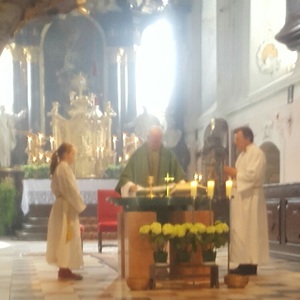 Am Sonntag den 19. Juni war er dann als prominenter Ministrant bei den Initien in Adriach aktiv dabei und unterstütze Pater Simon auch beim Lesen.