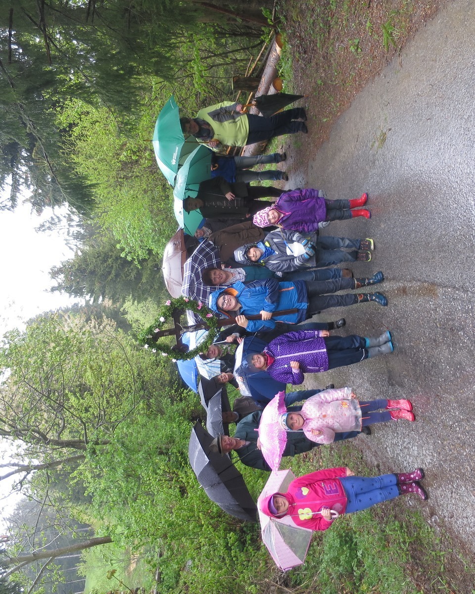 Am Sonntag, dem 1. Mai fand am Altenberg bei regennassem Wetter das traditionelle Felderbeten mit einer Kindermesse in der Garage des Nachold-Bauers statt. Die "sieben Glorreichen" Kids unter der Leitung von Susanne Hörzer gestalteten eine eindruchsvolle Familienmesse zum Lobe Gottes und zur Freude der Anwesenden, die hinter sich ein paar Kilometer Fußweges bei strömenden Regen hinterließen. Nach der Messe gab es eine doppelte Agape am Bauernhof Affenberger vlg. Nachold und Hörzer vlg. Bodlos.