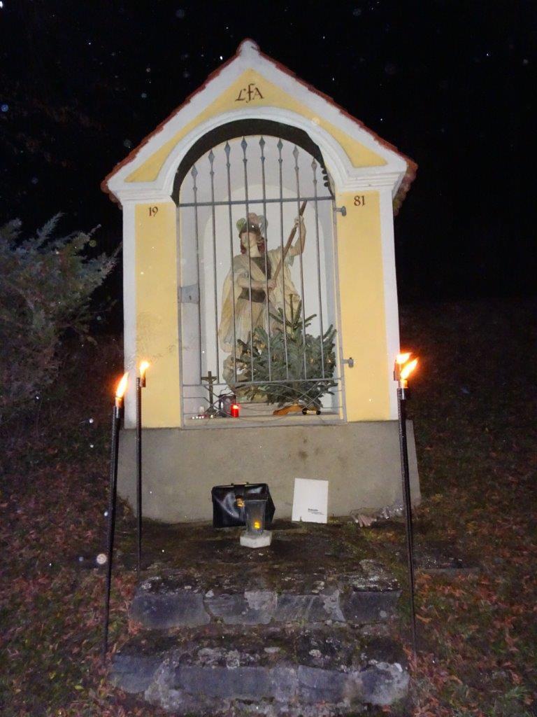 Eine sehr stimmungsvolle Adventfeier hielt heuer der Kameradschaftsverein Frohnleiten am 15. Dezember in Adriach ab, an der 25 Kameradinnen und Kameraden teilnahmen. Vom Dorfplatz ging es um 17 Uhr mit Laternen zu Fuß hoch zum Georgi-Bildstock am Hof der Familie Fassl vulgo Hacker.