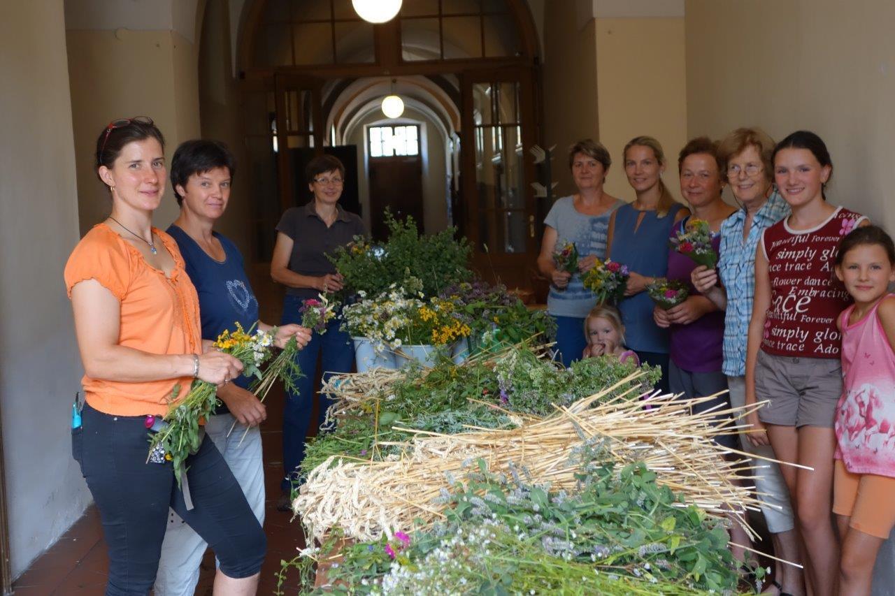 Am Vortag zum Patronatsfest Mariä Himmelfahrt luden die Bäuerinnen unsere Pfarrgemeinde traditionell zum Kräuterbüscherlbinden in den Klostergang der Pfarrkirche ein.