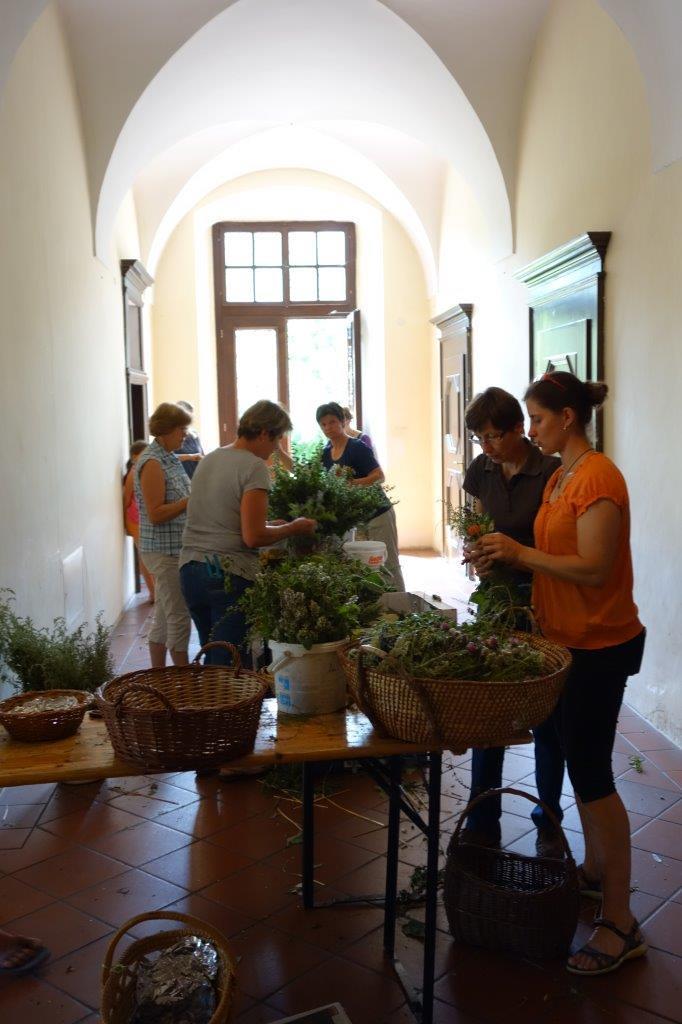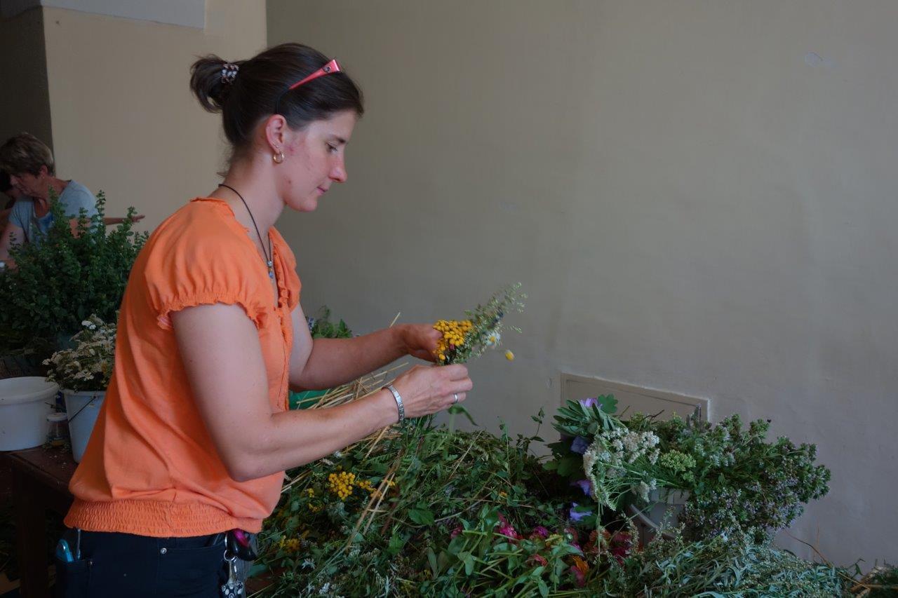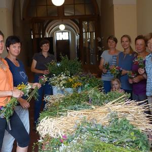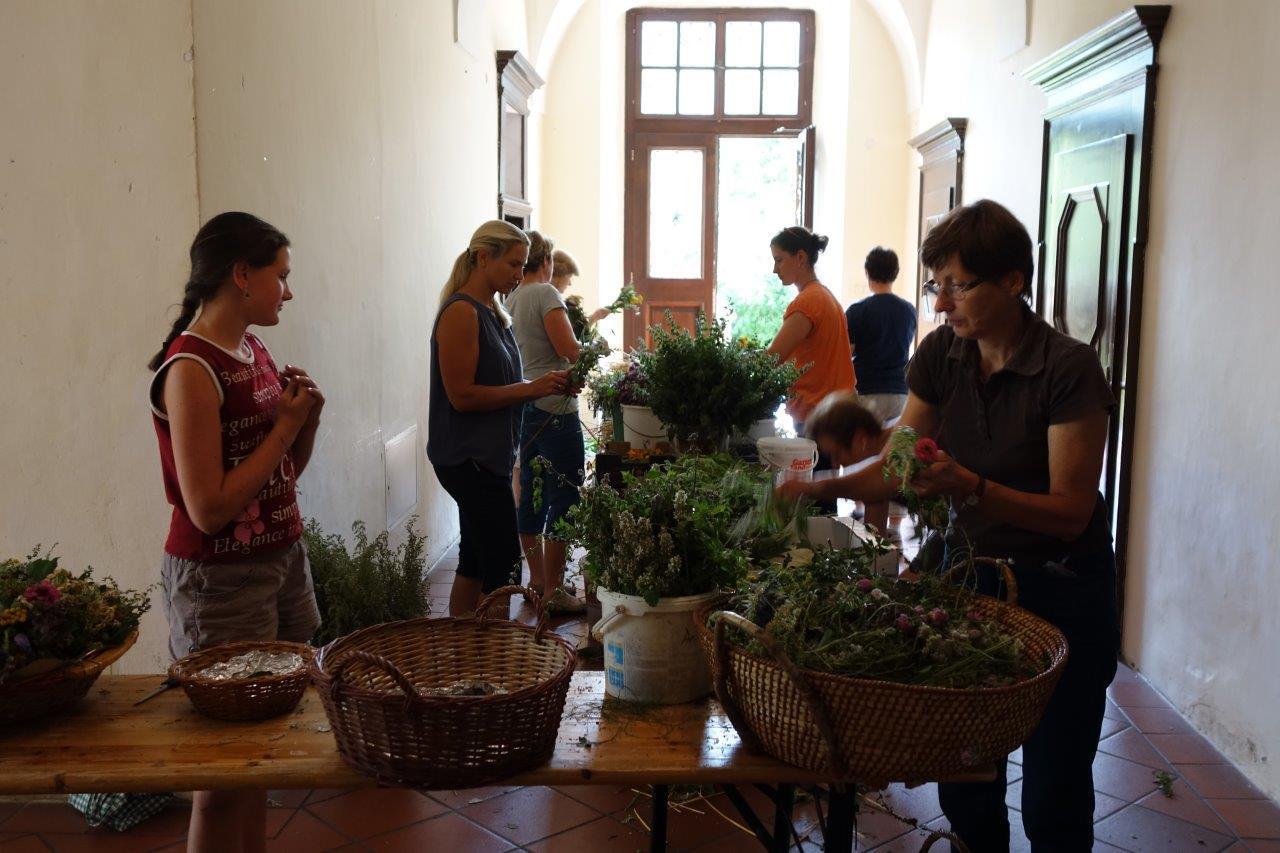 Kräuterbüscherlbinden im Klostergang der Pfarrkirche am 14. August 2017