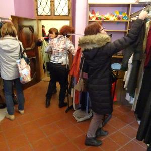 Gleichzeitig organisierte der örtliche Frauentreff unter der Leitung von Edith Grundauer-Leski und Gabi Prietl den Verkauf von Trachteng`wand aus 2ter Hand im Jugendraum und im Klostergang.
