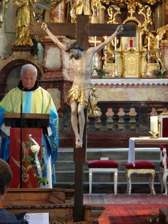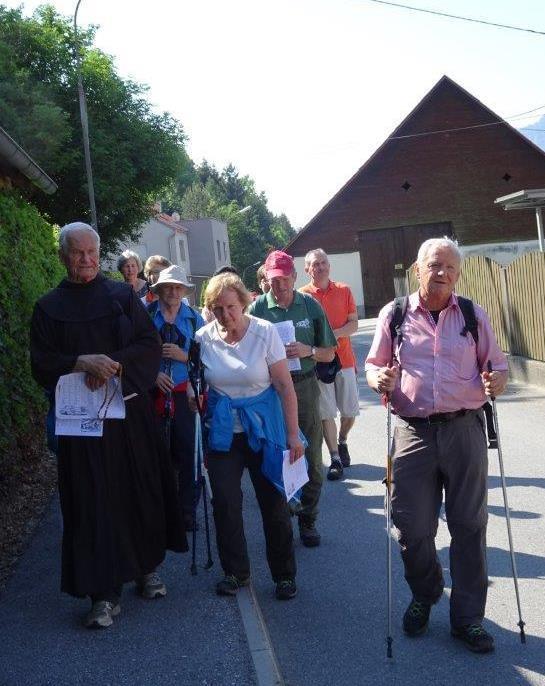 Die heurige Fußwallfahrt nach Pernegg stand unter dem Motto "Von Maria - zu Maria". Zum 3. Mal ausgehend vom 2016 errichteten Marien-Bildstock beim Murkraftwerk in Peugen begleiteten 11 Pilger Pater Simon zu Fuß zur Wallfahrt über den Murradweg 2 in Richtung Norden. Nach einer kurzen Andacht beim neuen Bildstock um 6 Uhr früh folgten bei herrlichem Frühlingswetter weitere Gebete und Marienlieder bei der Feldgrill-Zuhube und der Kapelle in Mixnitz. Das Ziel, die Marien-Wallfahrtskirche in Pernegg, auch liebevoll "Frauenkirche" bzw. Wallfahrtskirche Klein-Mariazell genannt, wurde knapp vor 10 Uhr erreicht. Mit Glockengeläute und den vor der Kirche wartenden Gläubigen aus Frohnleiten wurden die tapferen Pilger betend zur Gnadenmutter von Pernegg geleitet. Pater Simon zelebrierte dann dort die Wallfahrermesse. Die Heimreise erfolgte hernach mit Privat-PKWs.