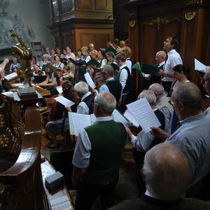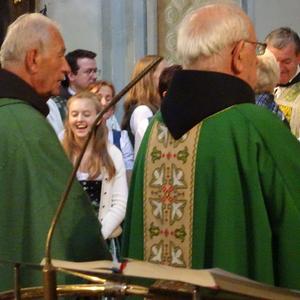 Musikalisch umrahmt wurde der feierliche Gottesdienst von den vereinigten Frohnleitner Chören. Im Anschluss an das "Großer Gott, wir loben Dich" in der Pfarrkirche gab es hernach eine Agape in den Klostergängen bei großem Andrang!