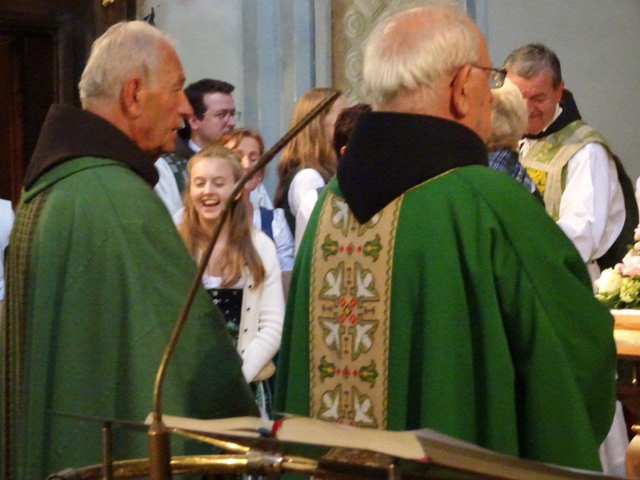 Mit einem ergreifenden Festgottesdienst in der übervollen Pfarrkirche wurden am 26. August um 10 Uhr die beiden Franziskanerpatres Pater Simon und Pater Dominikus aus Frohnleiten verabschiedet. Die Gruß- und Dankesworte des Bischofs überbrachte Generalvikar Prälat Leopold Städtler. Die Festpredigt hielt der Franziskanerpater aus Graz, Willibald Hopfgartner OFM.