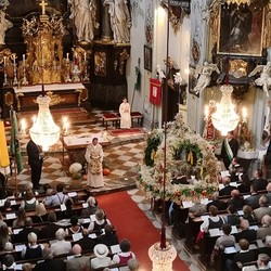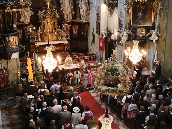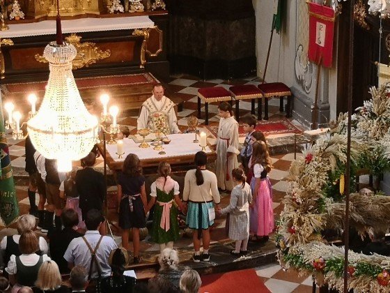 Das Erntedankfest wird in Frohnleiten immer besonders feierlich begangen: Diesmal studierten der Chor und die Streicher des Orchesters der Pfarre unter der Leitung von Miriam Ahrer die "Missa Fac Bonum" des Barock-Komponisten Valentin Rathgeber ein. Der Titel des Werks bezieht sich auf einen Gedanken des 24. Psalms: „Meide das Böse und tue das Gute, suche den Frieden und strebe danach!“.