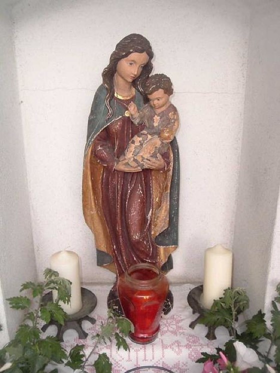 Das Herzstück dieses Bildstocks ist eine aus Holz geschnitzte Marienstatue mit dem Jesuskind in der mittleren Nische. Sie wurde seinerzeit von einem Kärntner Künstler bei der Grazer Messe erworben. Aufgrund der Witterungseinflüsse am Laufnitzberg ist die Statue mittlerweile etwas restaurierungsbedürftig. In den beiden Seitennischen sind Bilder von Maria und Jesus zu sehen.