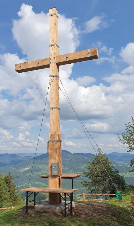 Das alte Gipfelkreuz am Haneggkogel, das ursprünglich 1954 von der Katholischen Jugend Waldstein errichtet wurde, war in die Jahre gekommen und musste daher erneuert werden. Und so wurde das alte Kreuz demontiert und unter tatkräftiger Mithilfe vieler Grundstücksnachbarn und Freunde der Familie Jantscher vulgo Hanegg-Gruber bei herrlichem Wetter im Sommer 2024 durch ein neues ersetzt. Der Lärchenbaum, aus dem das neue Kreuz gefertigt wurde, stammt nur etwa 100 Meter entfernt vom Gipfel des Haneggkogels.