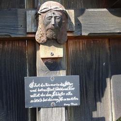 In der Mitte des Kreuzes ist ein Christus-Kopf angebracht, der von Herrn Rumpl vulgo Siegl geschnitzt und gespendet wurde.