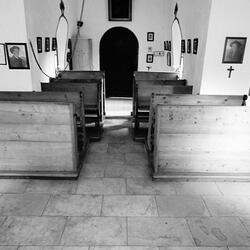 Die Grabkapelle wurde mit großen Natursteinen sehr stabil gebaut. Das undichte Schindeldach wurde durch ein Eternitdach ersetzt. Am Dachfirst ist ein kleiner Holzturm mit einer Glocke aufgesetzt.