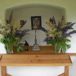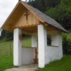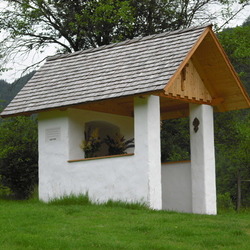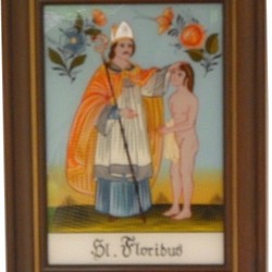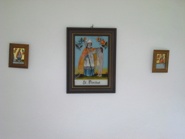 Im Gamsgraben steht auf einer kleinen Anhöhe hinter dem Wohnhaus der Familie Veronika (geb. Goess-Saurau) und Dr. Alexander von Leeb die jüngste Kapelle unserer Pfarrgemeinde. Sie wurde im Vorjahr als Privatkapelle errichtet und ist dem heiligen Floridus, dem Familien-Schutzpatron, geweiht. Dieser Heilige wurde in Tifernum in Umbrien (heute Città di Castello) geboren. Sein Wirken fällt in die Zeit Papst Gregors des Großen, d.h. ins 6. Jahrhundert. Nach dem Tod seiner Eltern „brachte er sich mit Hab und Gut der Kirche zum Opfer“, wie es in einem Heiligenlexikon von 1861 heißt. Sein Lehrer war der heilige Bischof Herculanus von Perugia, bis dieser den Märtyrertod erlitt. Floridus kehrte daraufhin in seine Heimatstadt zurück und wurde dort Bischof. Er vollbrachte verschiedene Wunder wie z.B. Krankenheilungen und wurde nach seinem Tod zum Patron seiner Kirche gewählt. Auf dem Hinterglasbild der neu erbauten Kapelle ist er in seinem Bischofsornat mit Stab und Mitra dargestellt, wie er gerade einen nackten Buben vom Wahnsinn heilt.