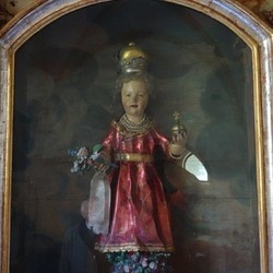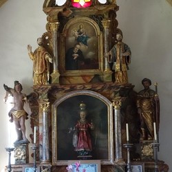 Der Altar ist in frühbarockem Stil gehalten. Im Mittelschrein ist normalerweise eine um 1520 geschnitzte, spätgotische Anna-Selbdritt-Gruppe zu sehen. Als „Anna selbdritt“ bezeichnet man eine Darstellung der heiligen Anna mit Tochter Maria und dem Jesuskind. Der Ausdruck „selbdritt“ ist ein altes Wort für „zu dritt“. Zur Zeit ist diese wertvolle Skulptur aus Sicherheitsgründen im Kirchenmuseum aufbewahrt. Stattdessen befindet sich das Prager Jesuskind im mittleren Schrein. Diese Plastik ist weltweit eines der bekanntesten wundertätigen Gnadenbilder.