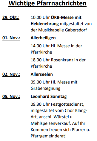 Wichtige Pfarrnachrichten