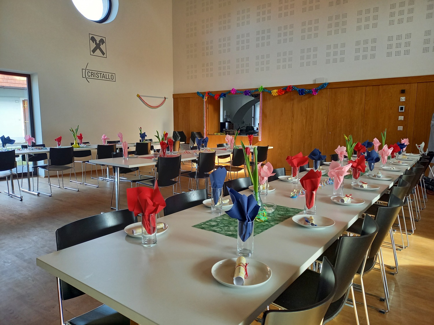 Die fleißigen Hände vom Pfarrgemeinderat und unserem Team des Be­geg­nungs­nach­mit­tags haben den Saal wunderbar geschmückt und ei­ni­ge haben Krapfen und Strauben für die Besucher gebacken.