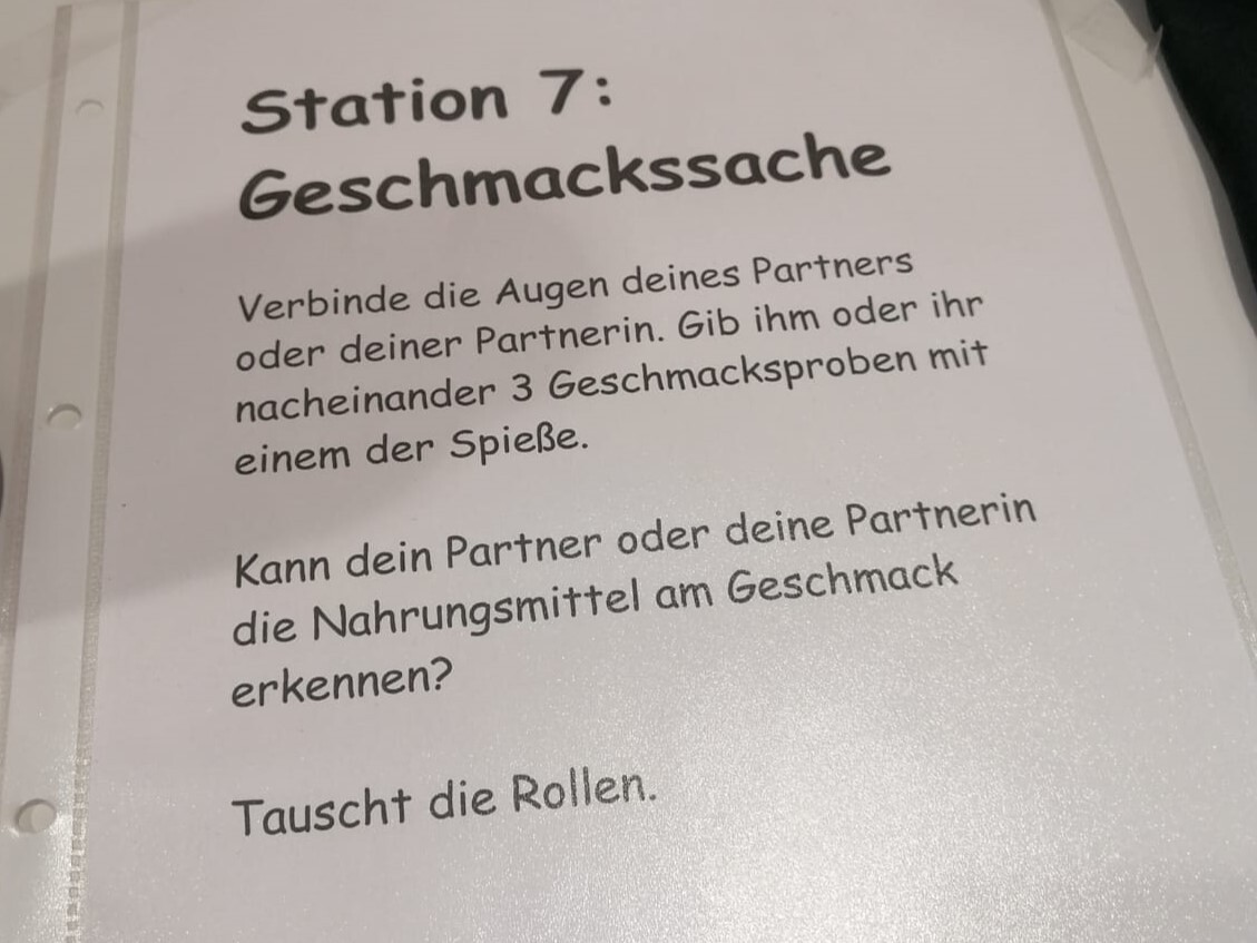 Hö­ren, Rie­chen, Schmec­ken, Füh­len - un­se­re Sin­ne wa­ren bei die­sem Spie­le­nach­mit­tag be­son­ders ge­for­dert. Bei ei­gens da­für vor­be­rei­te­ten Sta­ti­on­en durf­ten die Kinder Ihre Sin­ne trai­nie­ren und es kam da­bei zu ei­ni­gen Aha-Mo­men­ten.