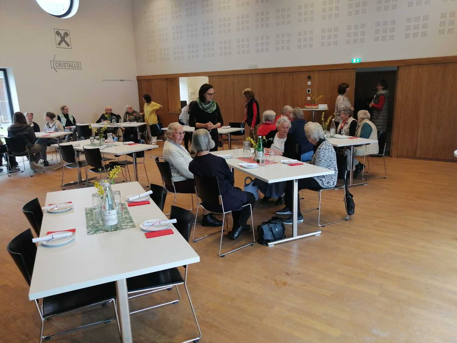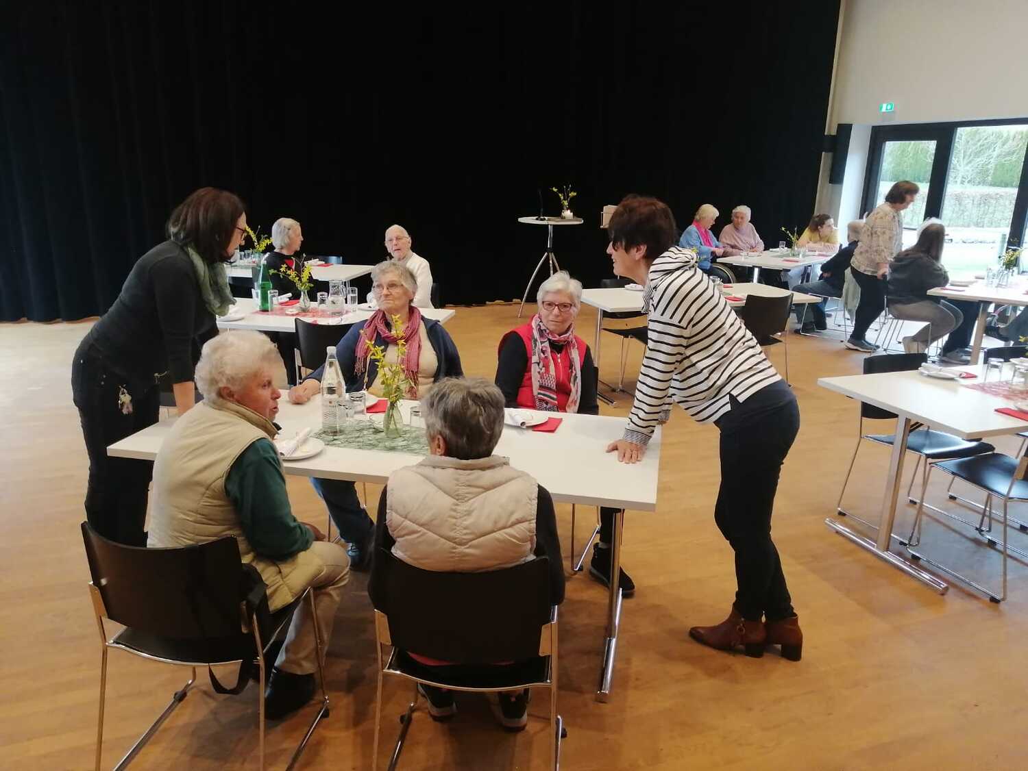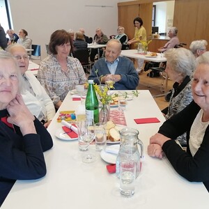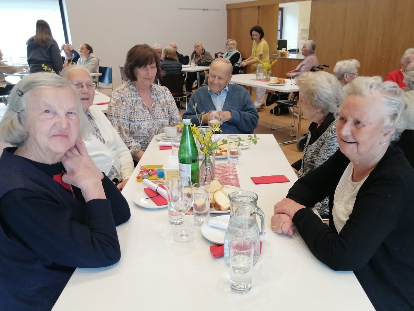 Nach dem besinnlichen Einstieg, der alle sehr berührte, wurde Kaffee und Weiß­brot serviert. In der Runde der Besucher befanden sich zwei Ge­burts­tags­kin­der denen herzlich gratuliert wurde. Mit einem Gläs­chen Wein wurde auf das Wohl von Herrn Resch und Frau Elsnig angestoßen.