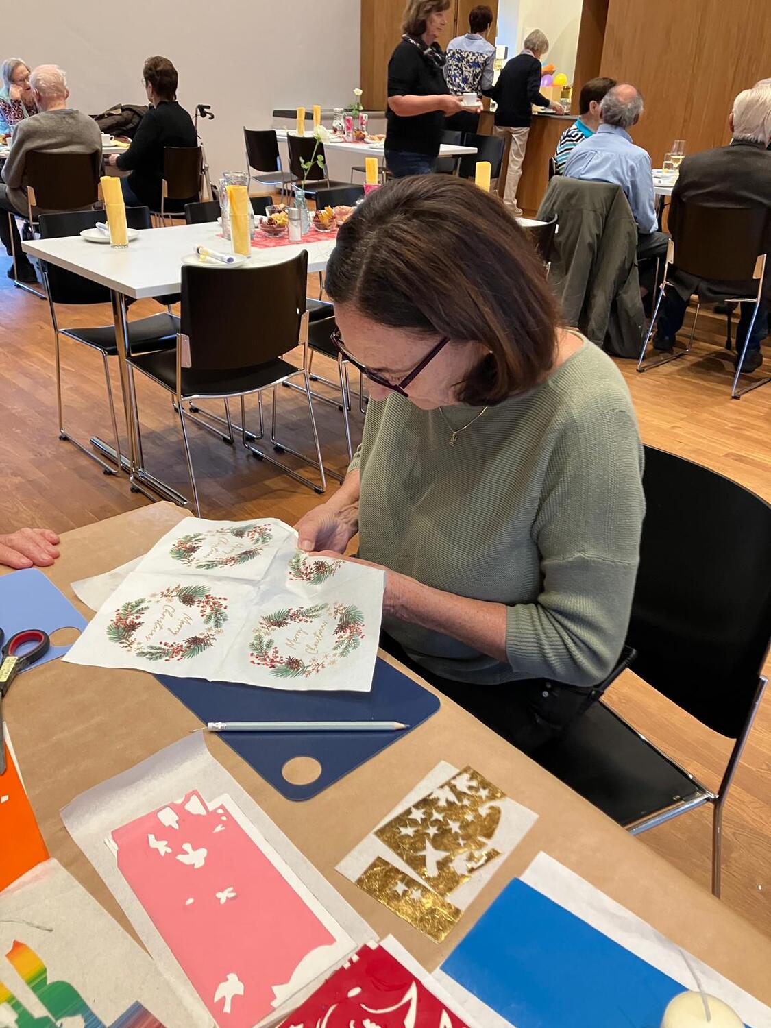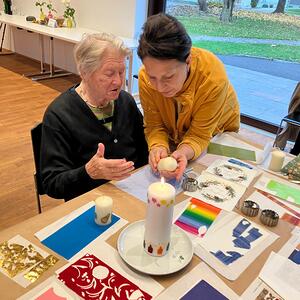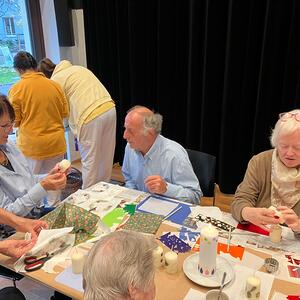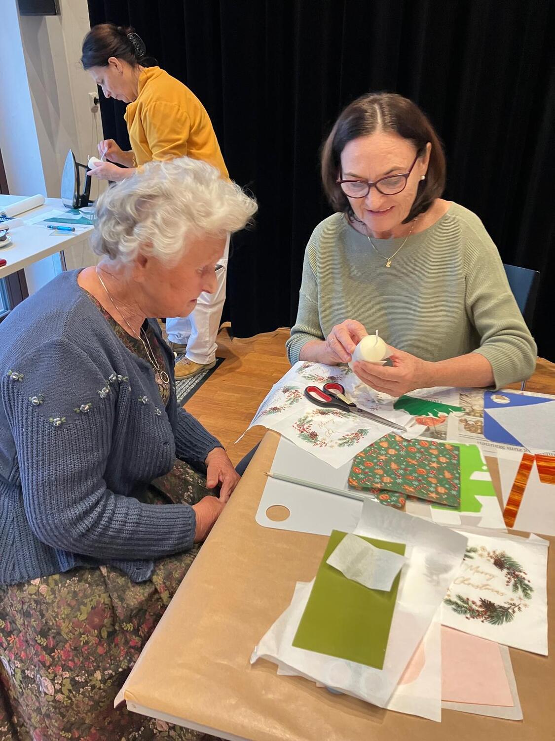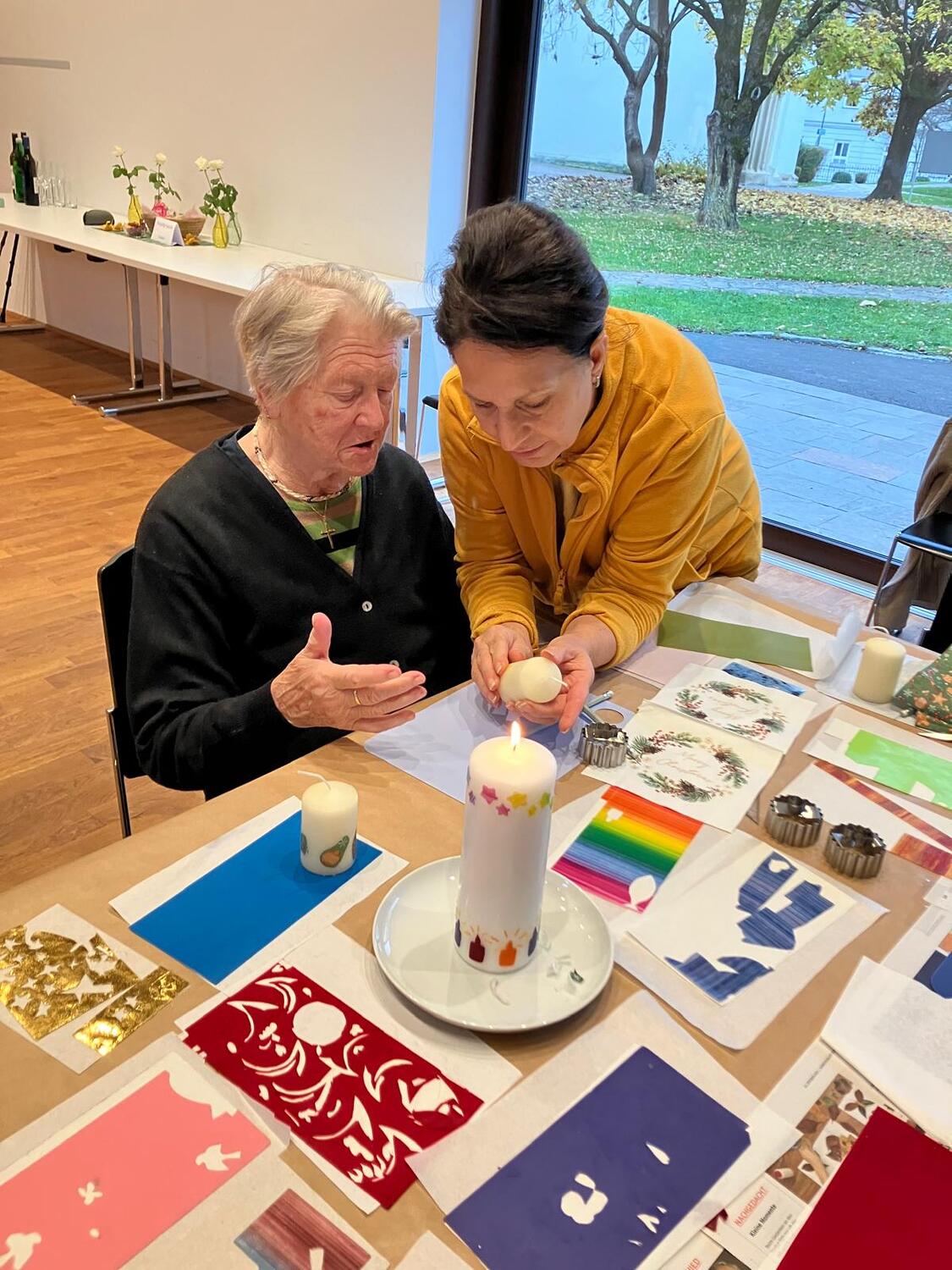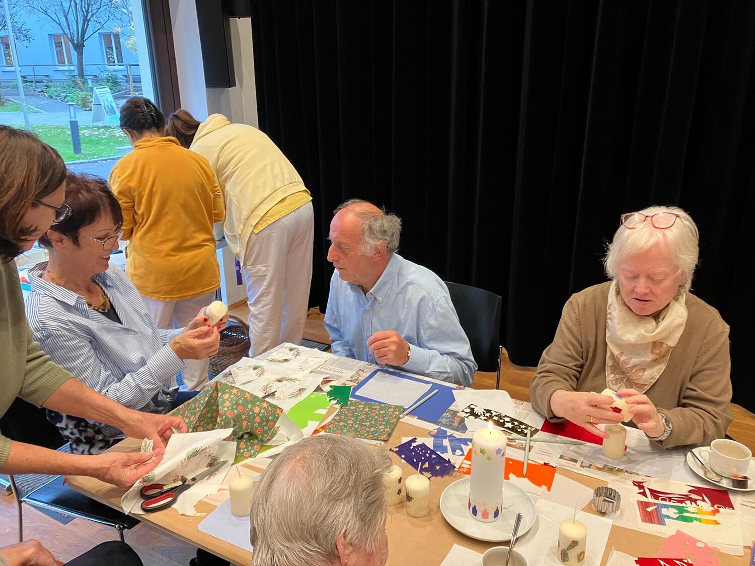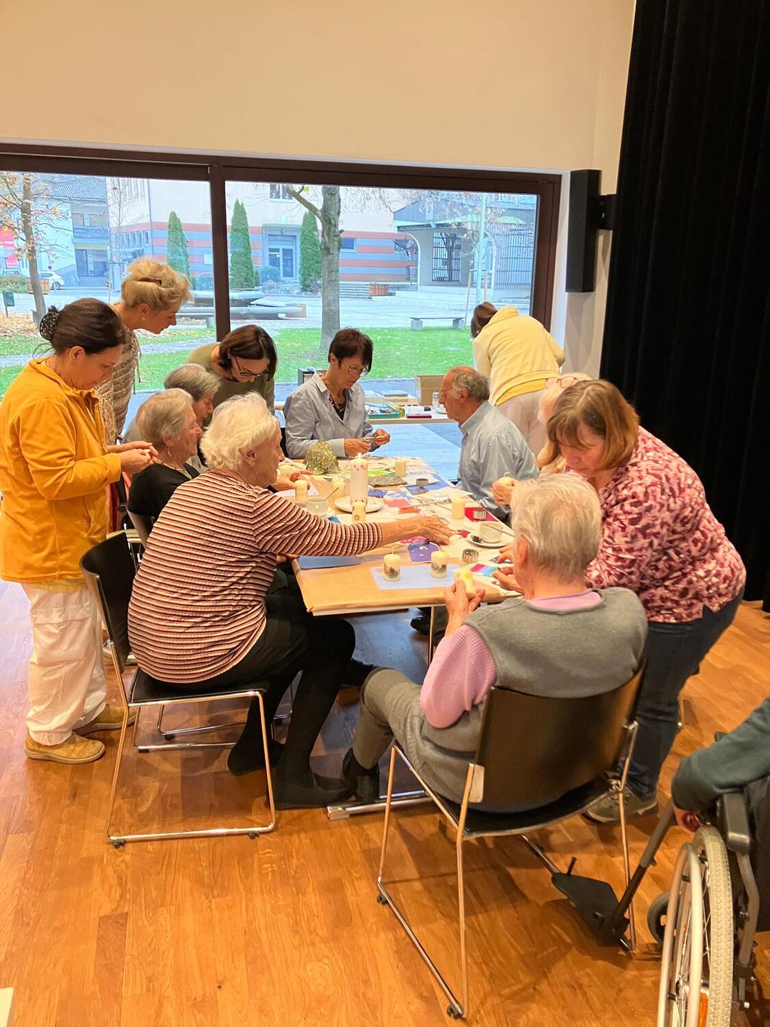 Es war eine Freude zu sehen, welche schönen Werkstücke entstanden. Auch die Neulinge im Kerzenverzieren konnten mit Unterstützung von Frau Elisabeth Verwüster, Frau Michaela Moser und Frau Sigi und Frau Karin von Gepflegt Wohnen wunderschöne Lichtbringer gestalten.